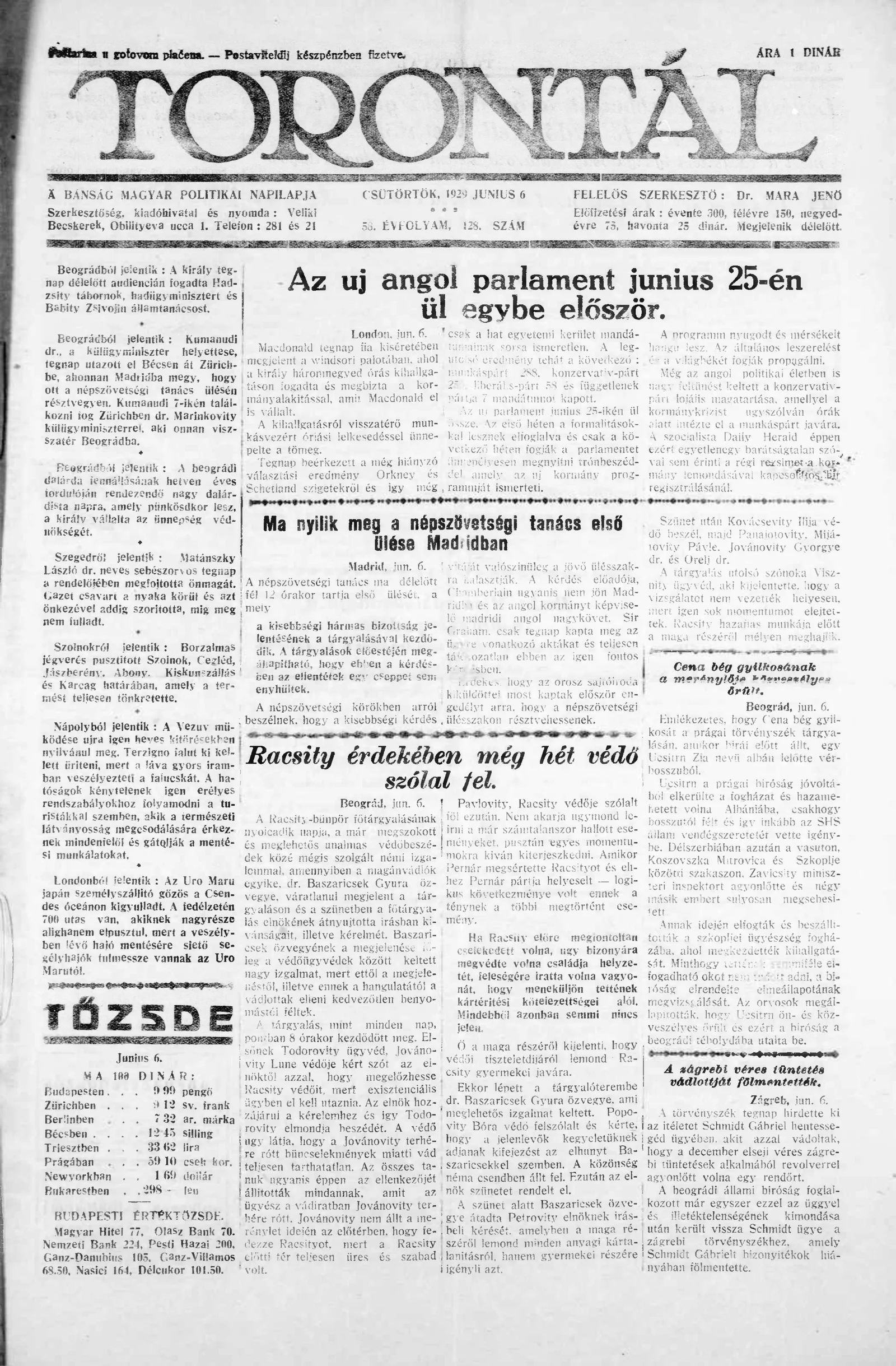 Torontál, 58. évf. 1929. június 6. 128. sz.