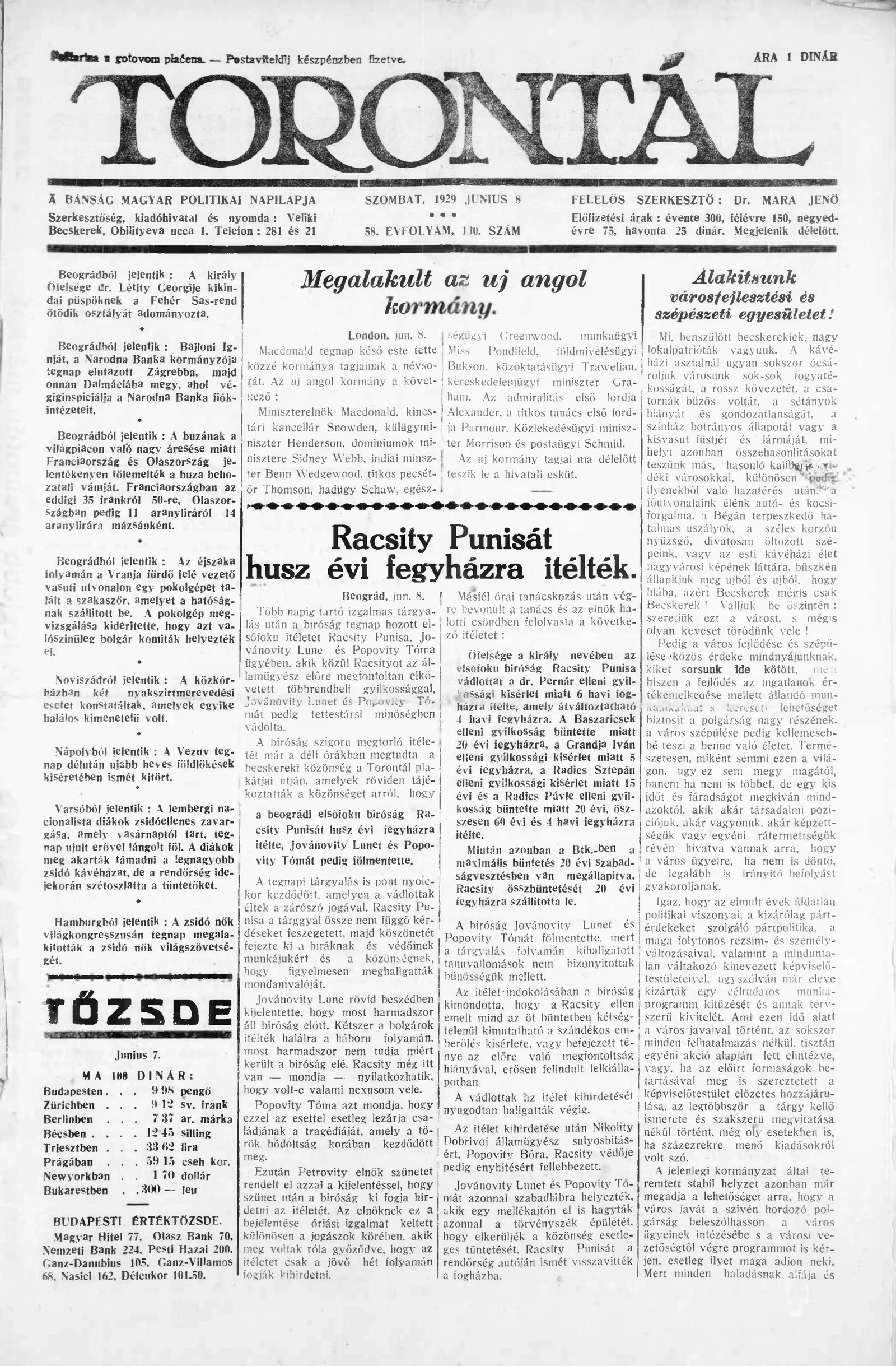 Torontál, 58. évf. 1929. június 8. 130. sz.