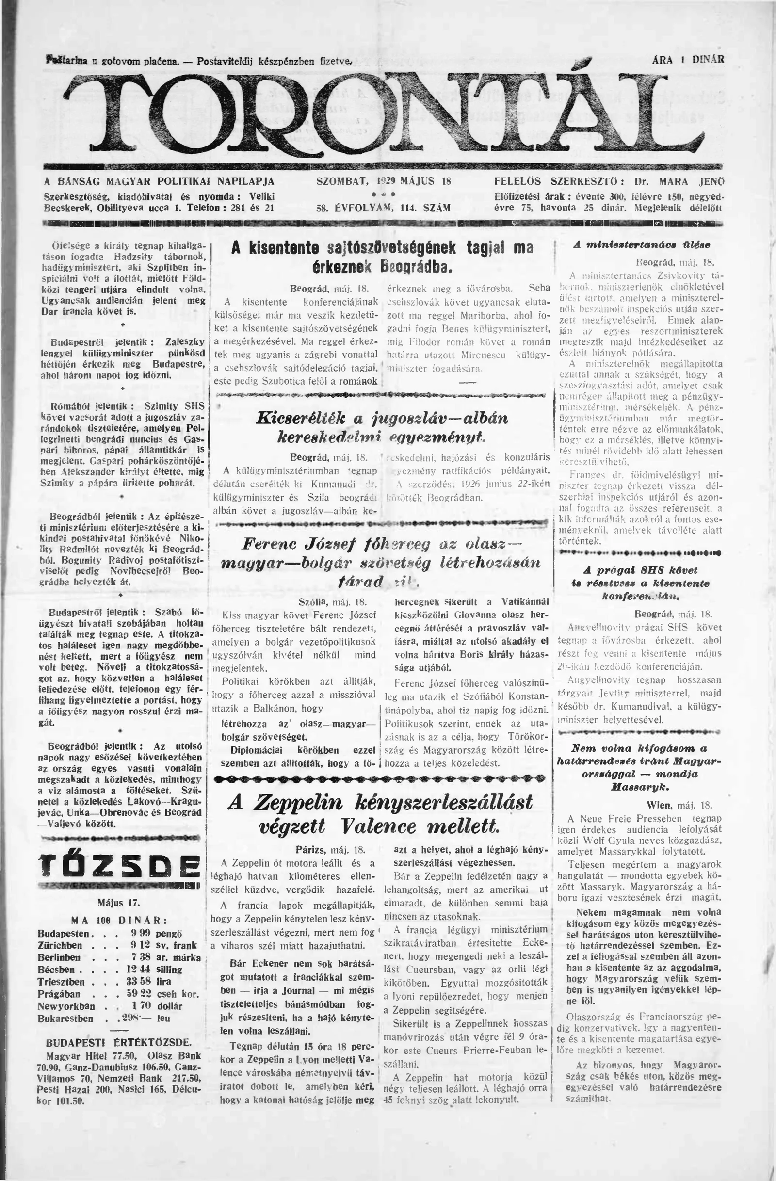 Torontál, 58. évf. 1929. május 18. 114. sz.