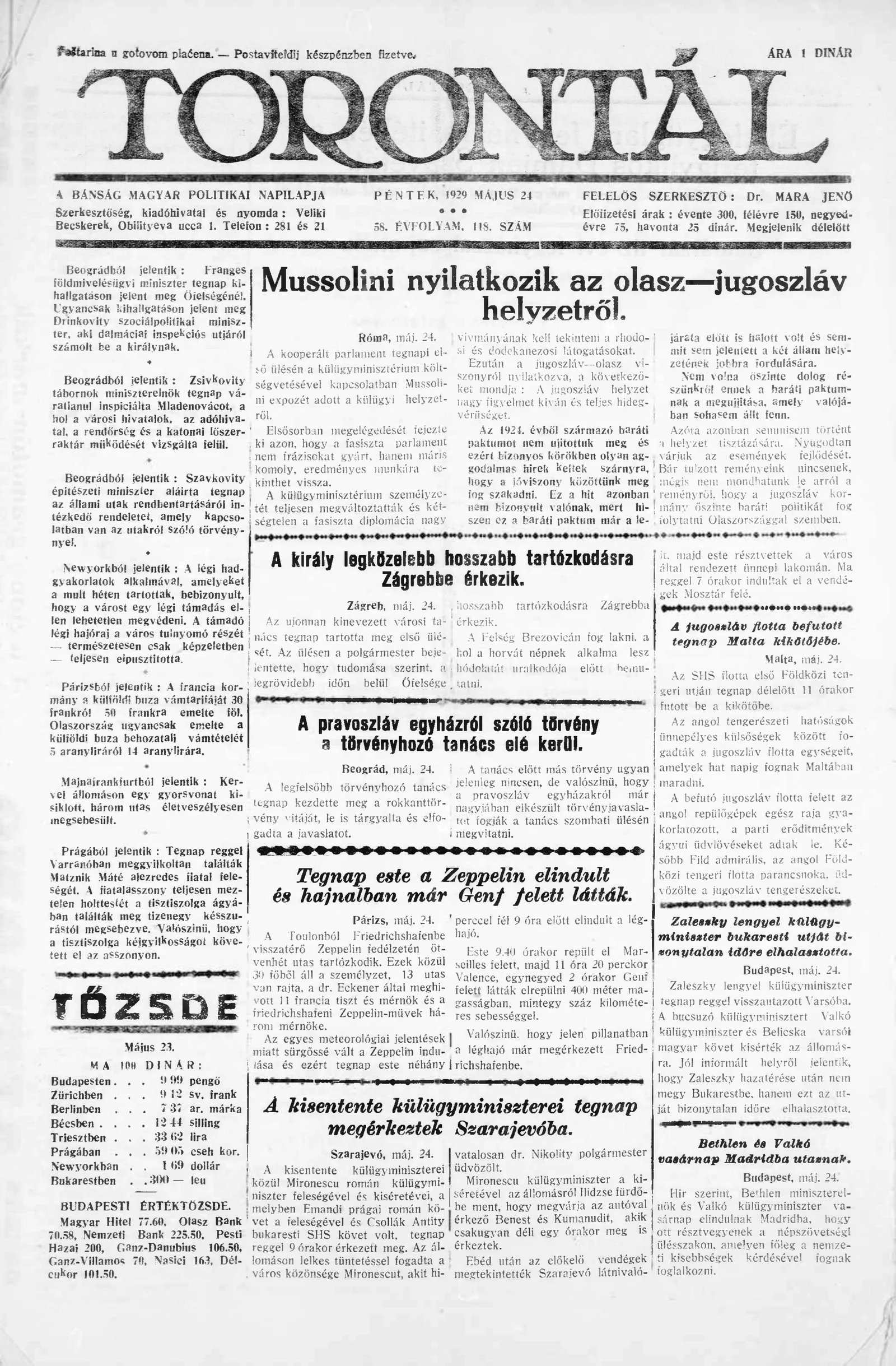 Torontál, 58. évf. 1929. május 24. 118. sz.