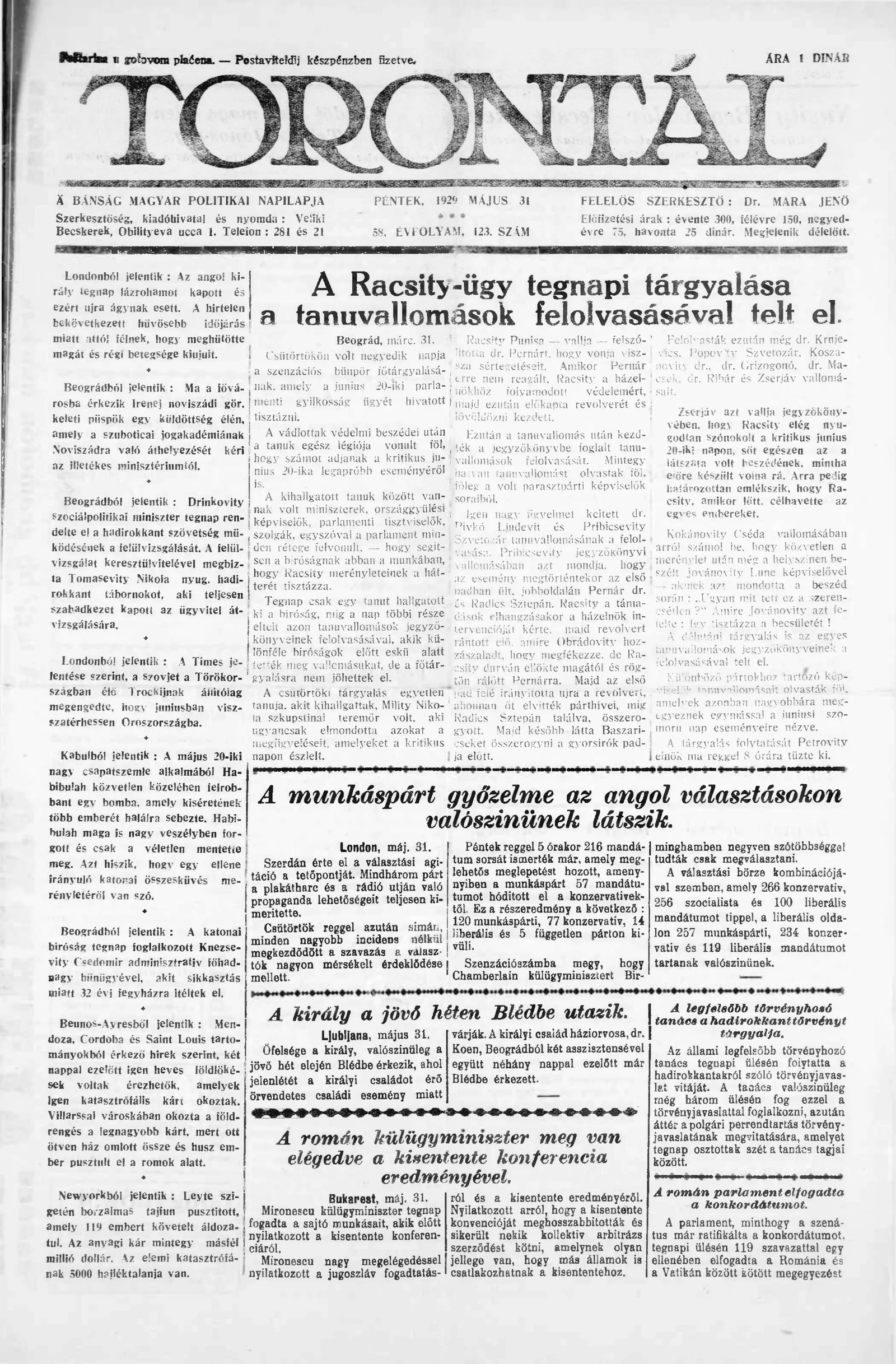 Torontál, 58. évf. 1929. május 31. 123. sz.