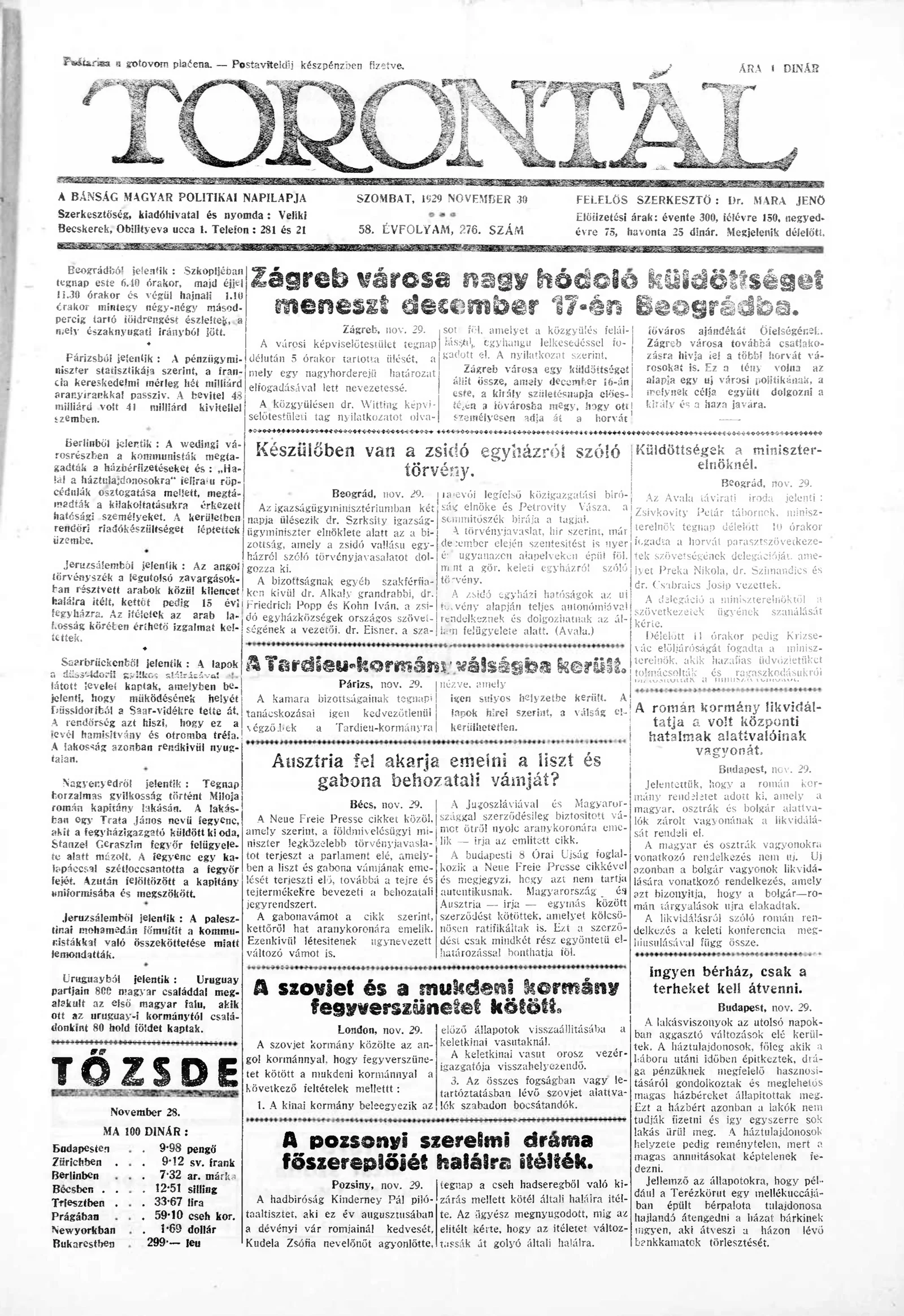 Torontál, 58. évf. 1929. november 30. 276. sz.