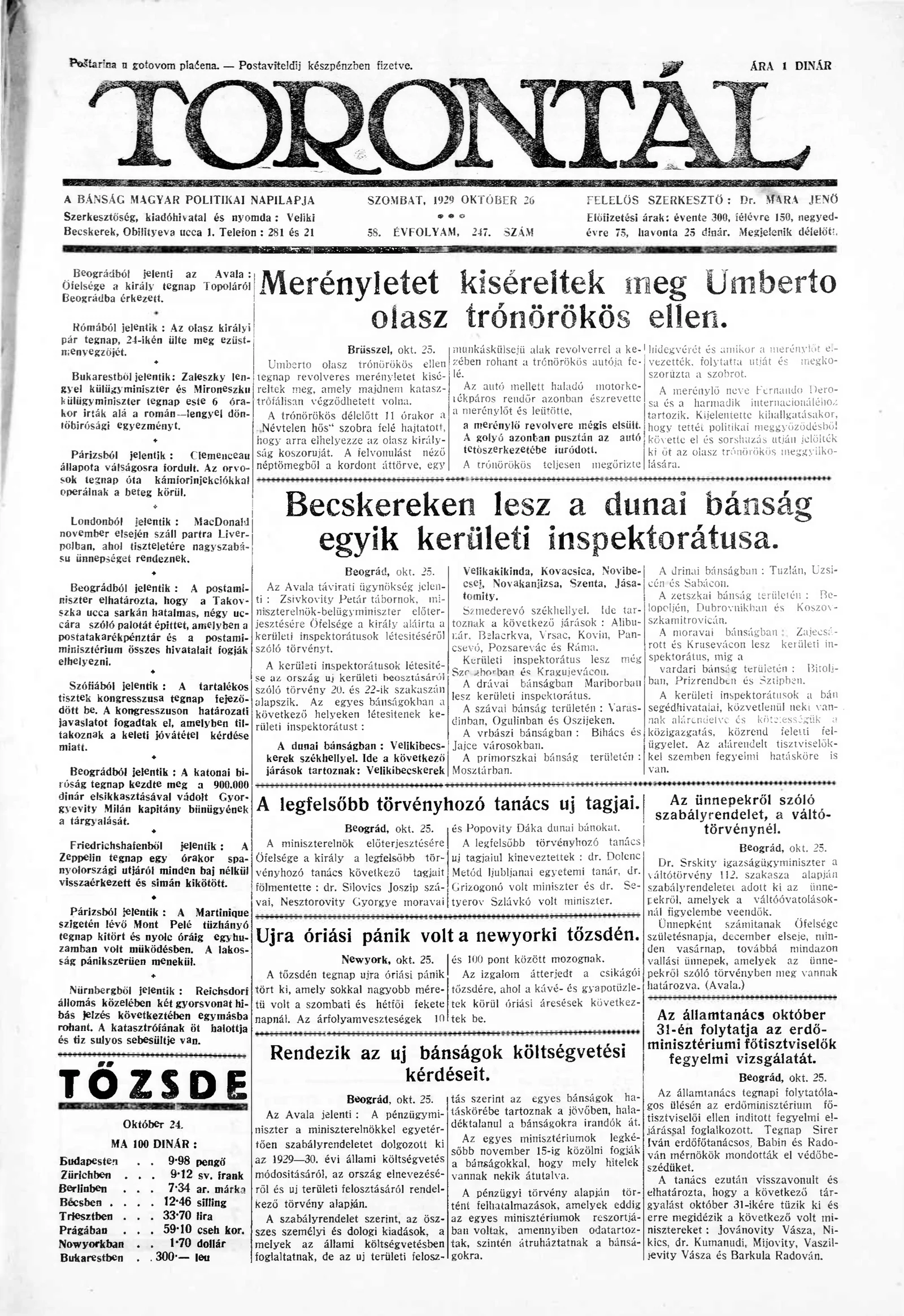 Torontál, 58. évf. 1929. október 26. 247. sz.