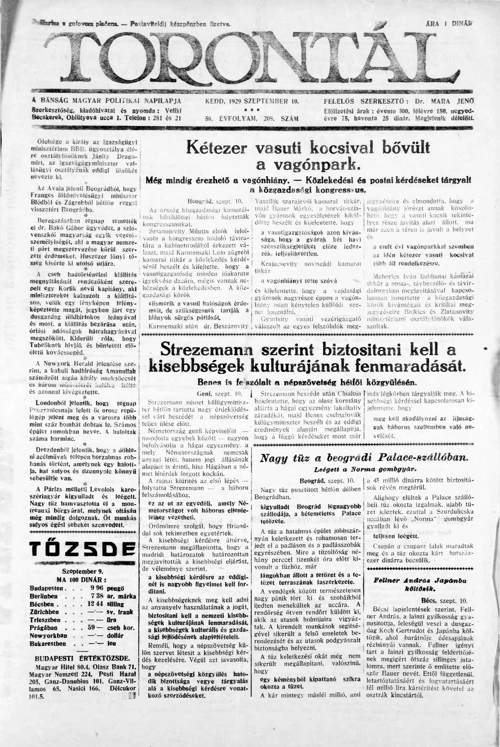 Torontál, 58. évf. 1929. szeptember 10. 208. sz.