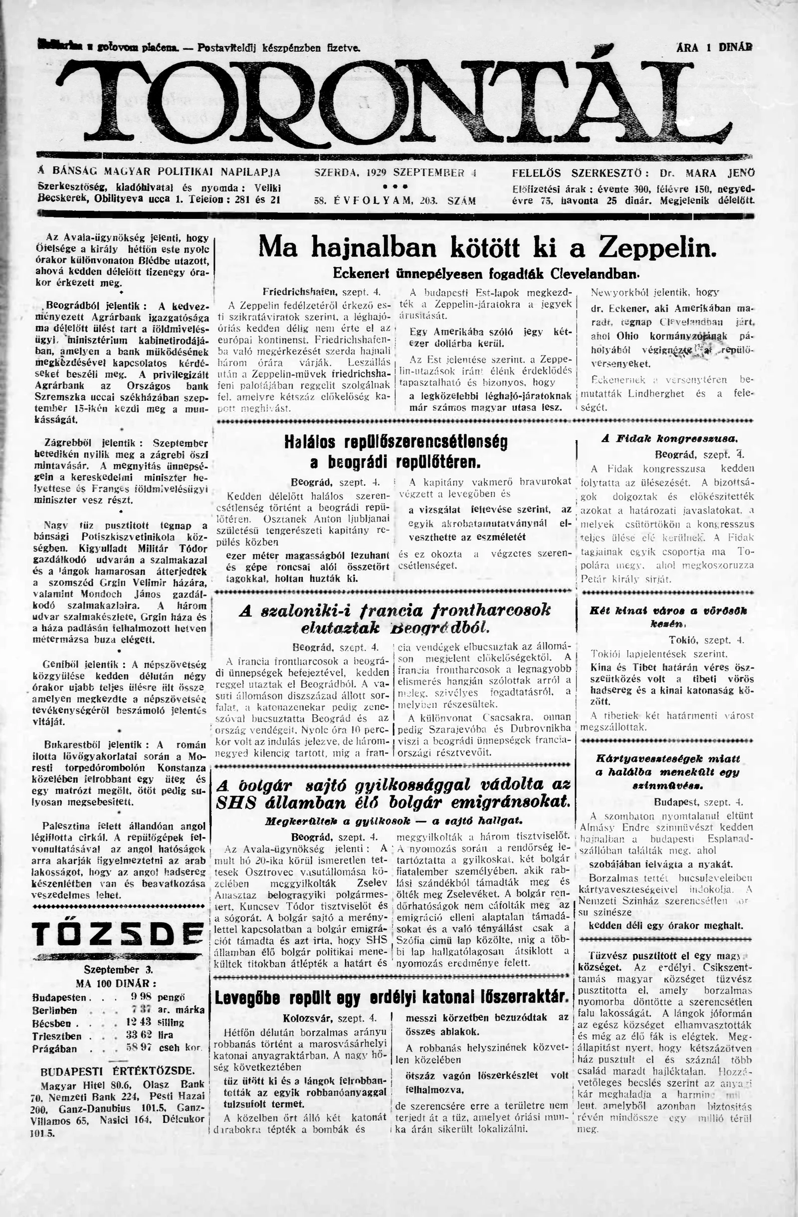 Torontál, 58. évf. 1929. szeptember 4. 203. sz.