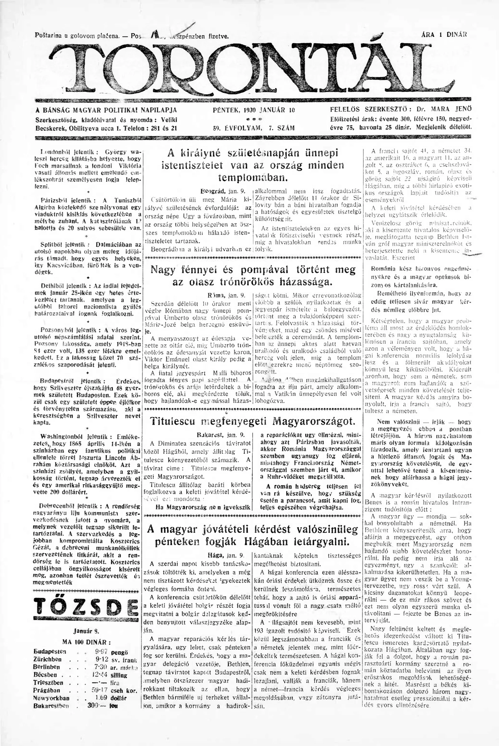Torontál, 59. évf. 1930. január 10. 7. sz.