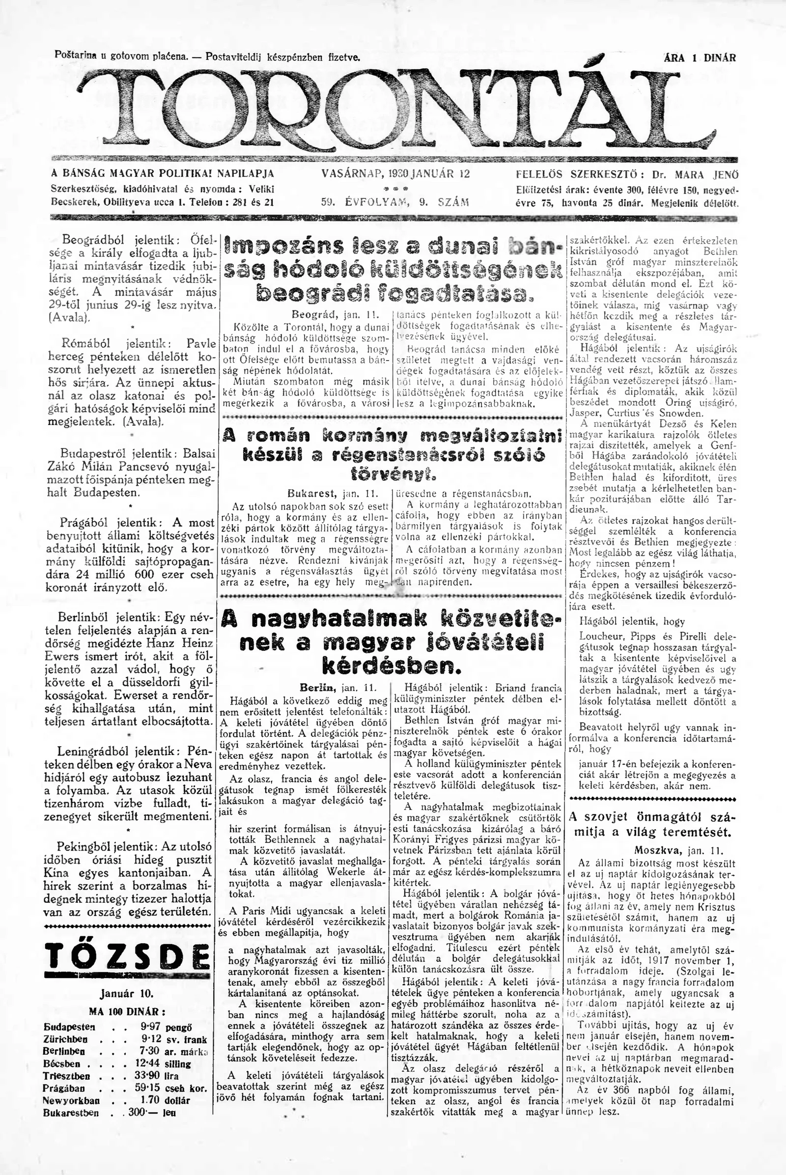 Torontál, 59. évf. 1930. január 12. 9. sz.