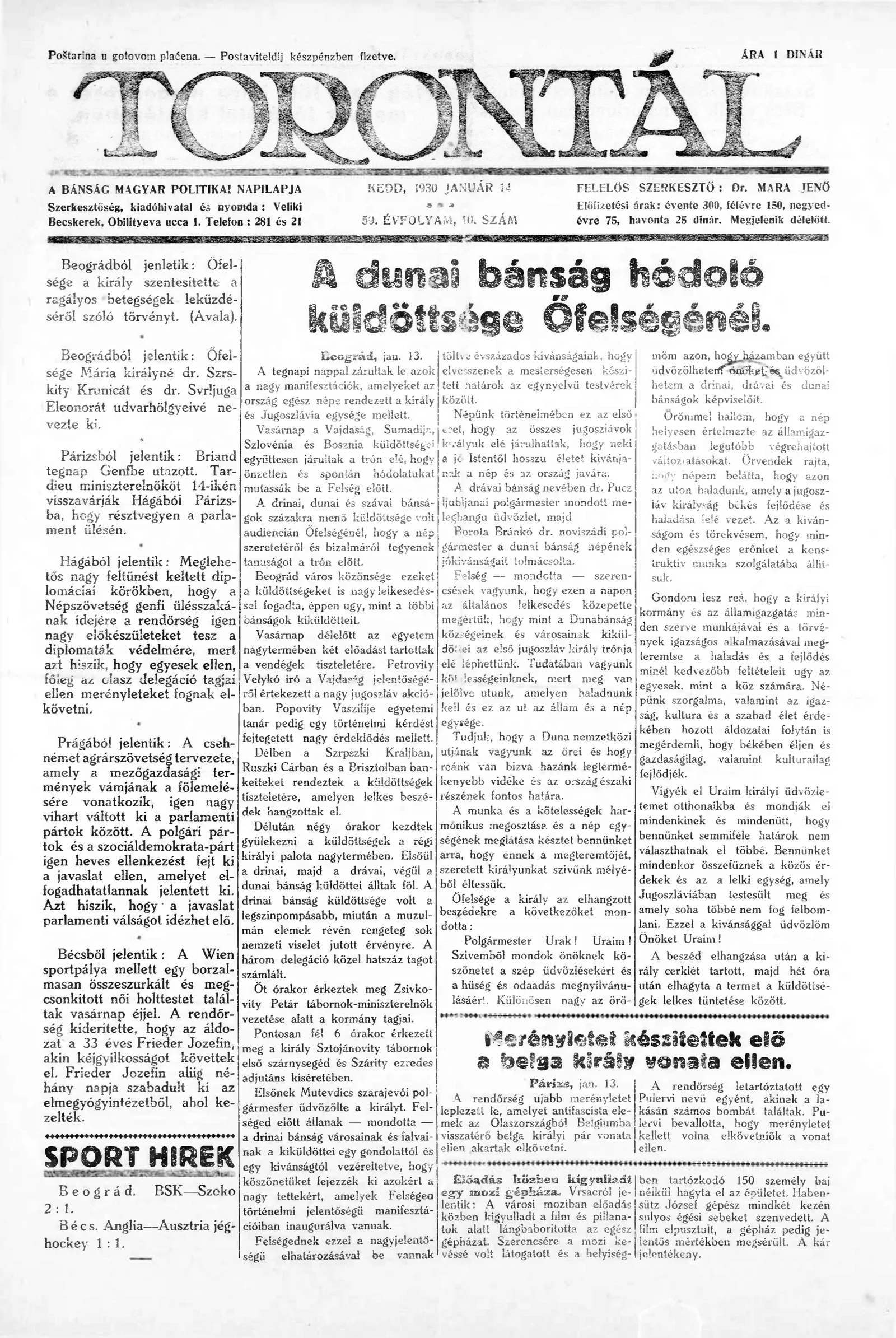 Torontál, 59. évf. 1930. január 14. 10. sz.