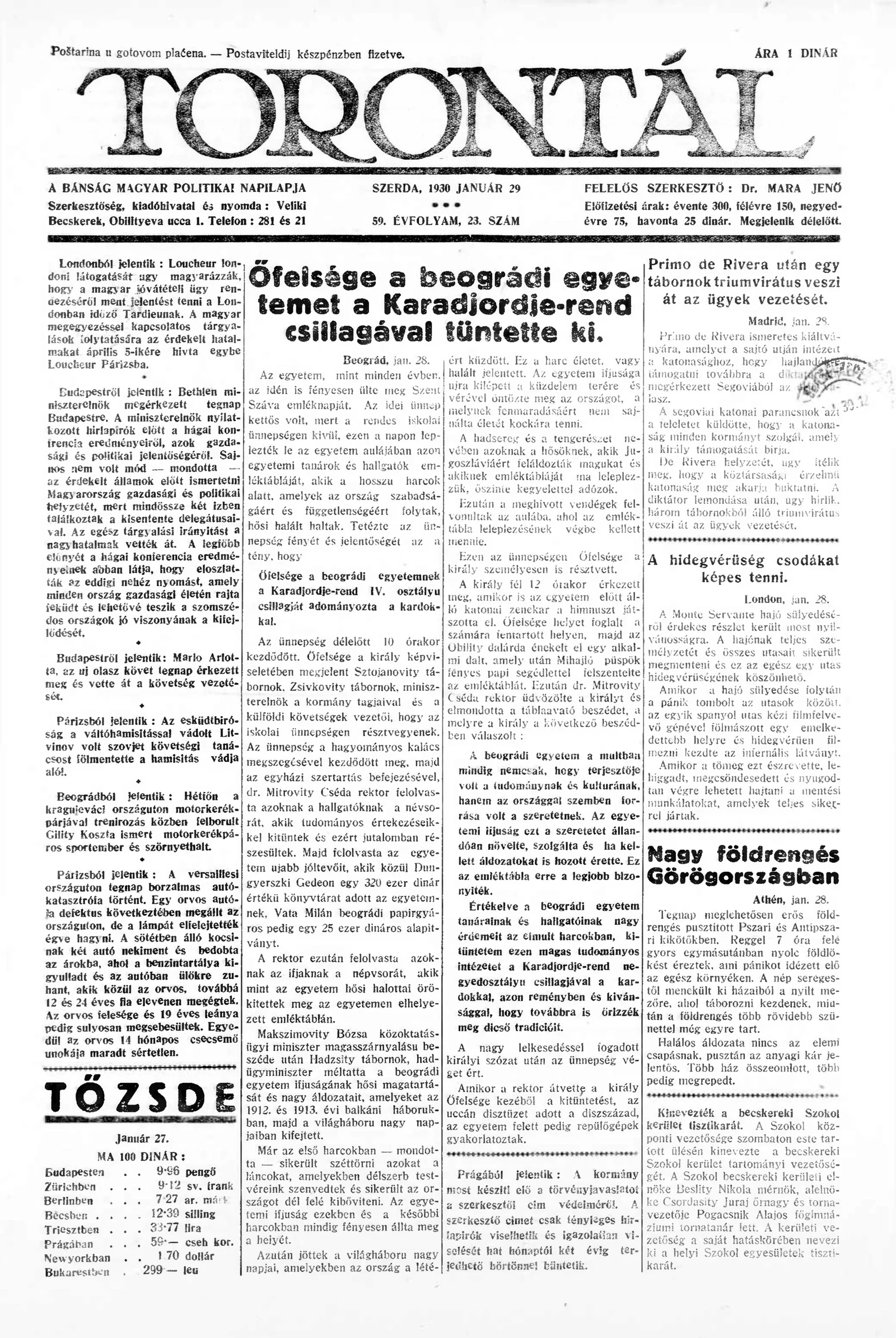 Torontál, 59. évf. 1930. január 29. 23. sz.