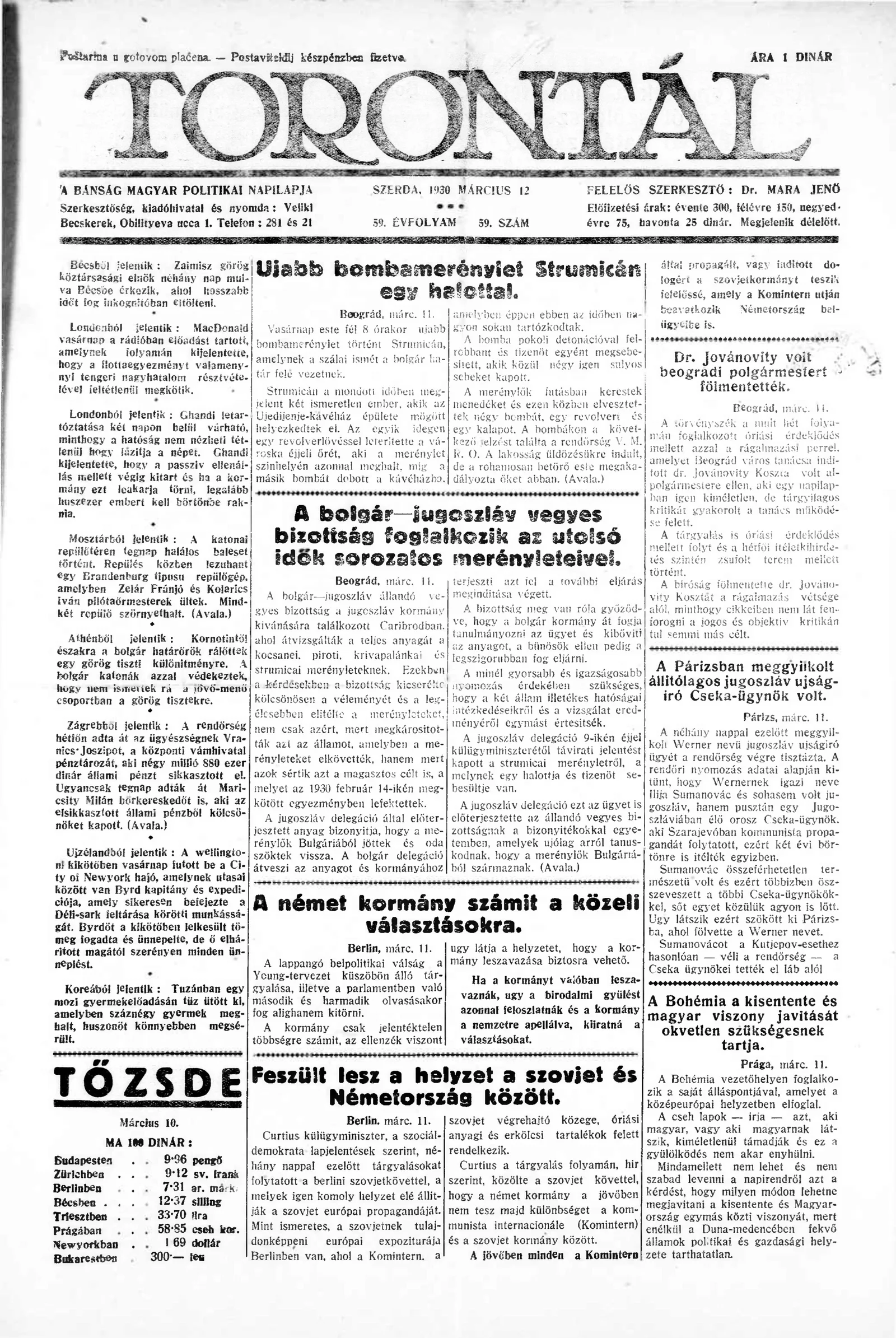 Torontál, 59. évf. 1930. március 12. 59. sz.