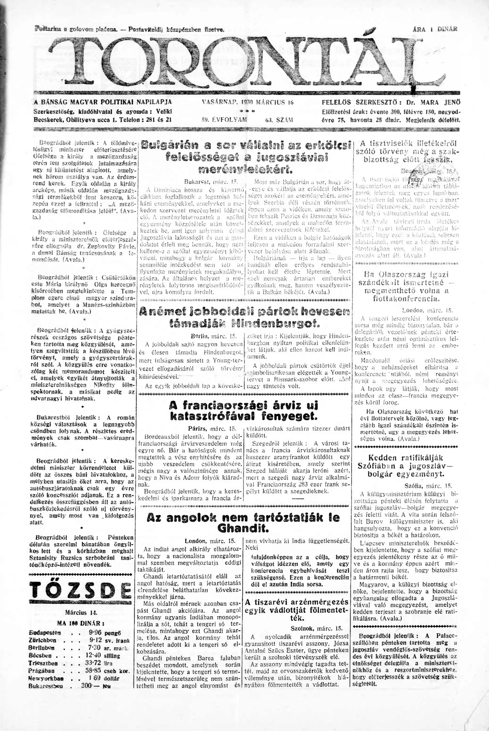 Torontál, 59. évf. 1930. március 16. 63. sz.