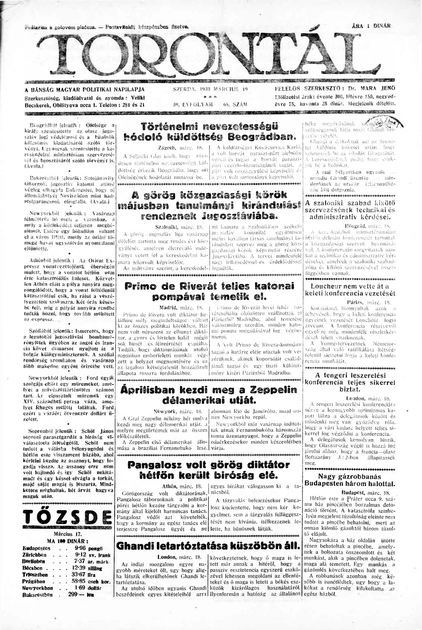 Torontál, 59. évf. 1930. március 19. 65. sz.