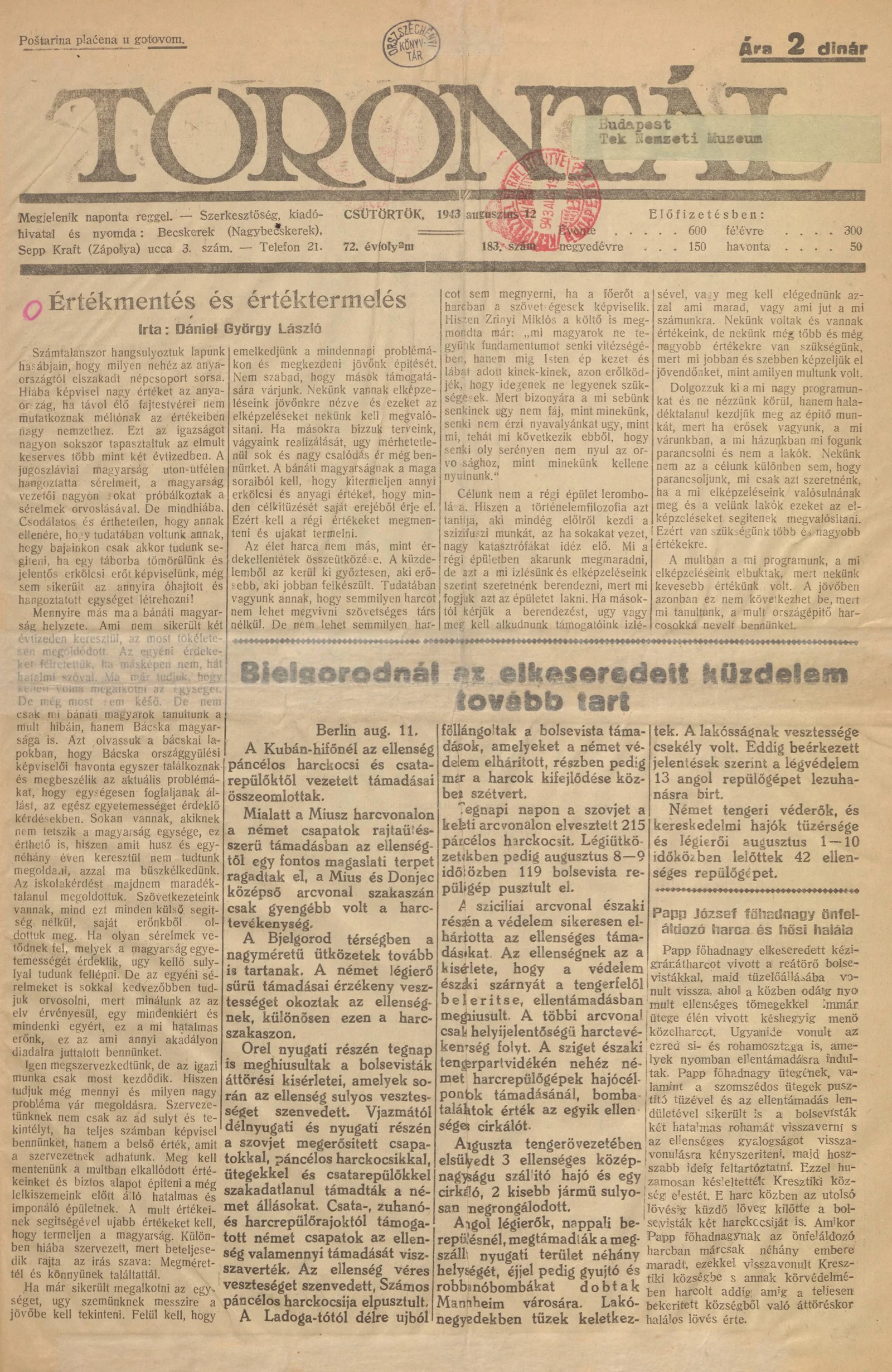 Torontál, 72. évf. 1943. augusztus 12. 183. sz.