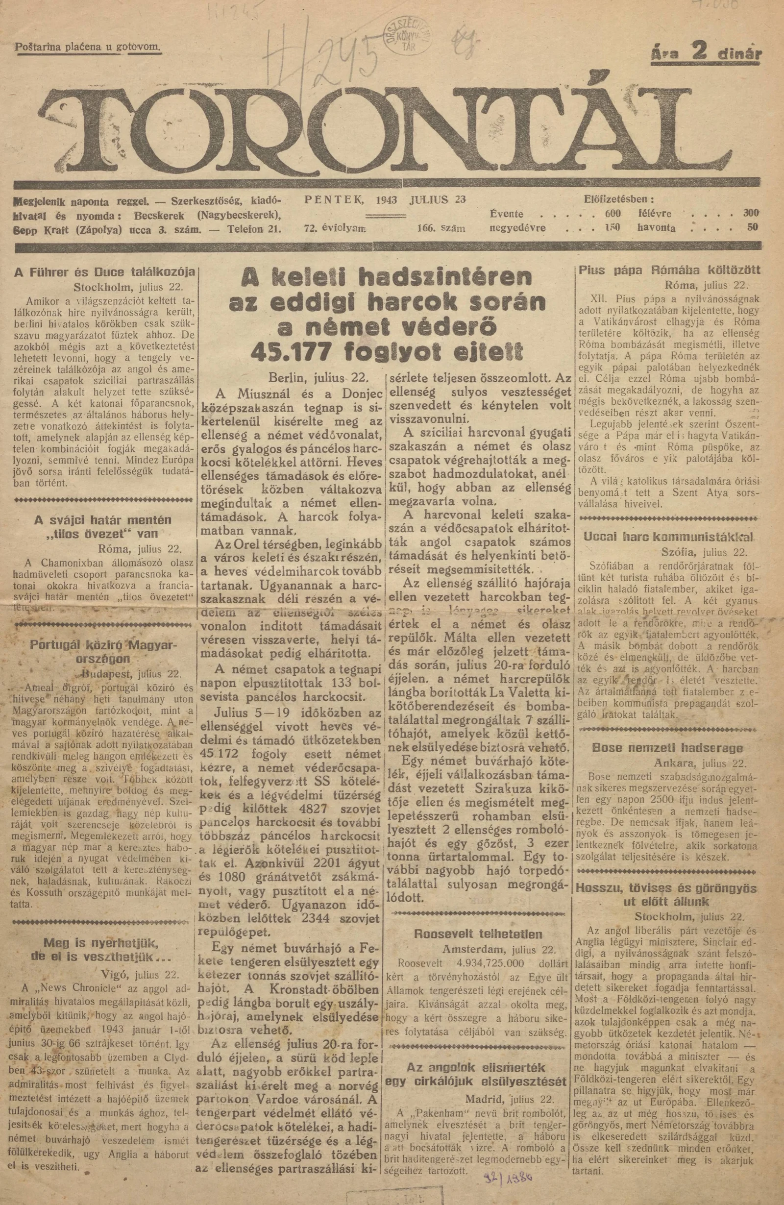 Torontál, 72. évf. 1943. július 23. 166. sz.