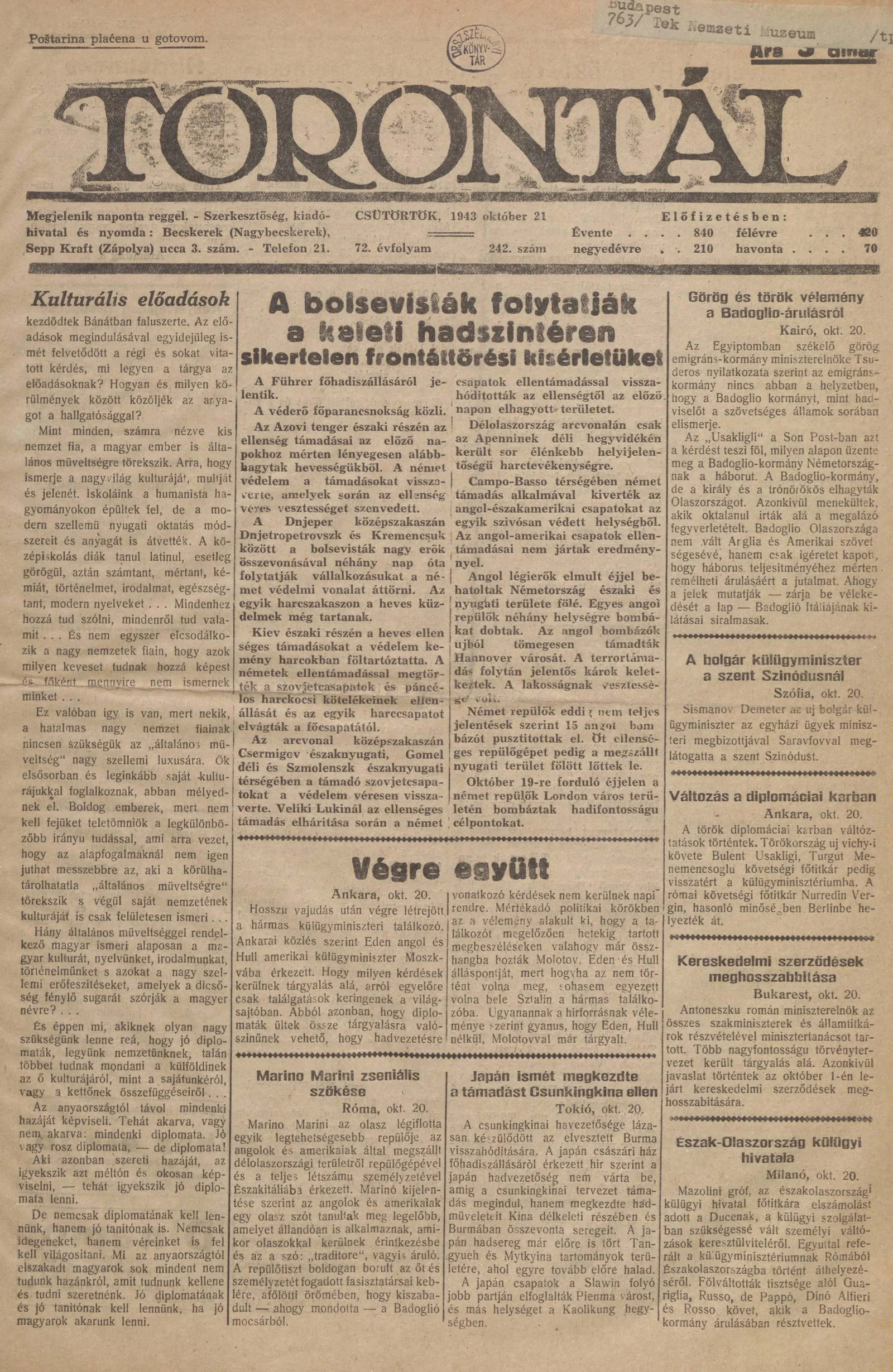 Torontál, 72. évf. 1943. október 21. 242. sz.
