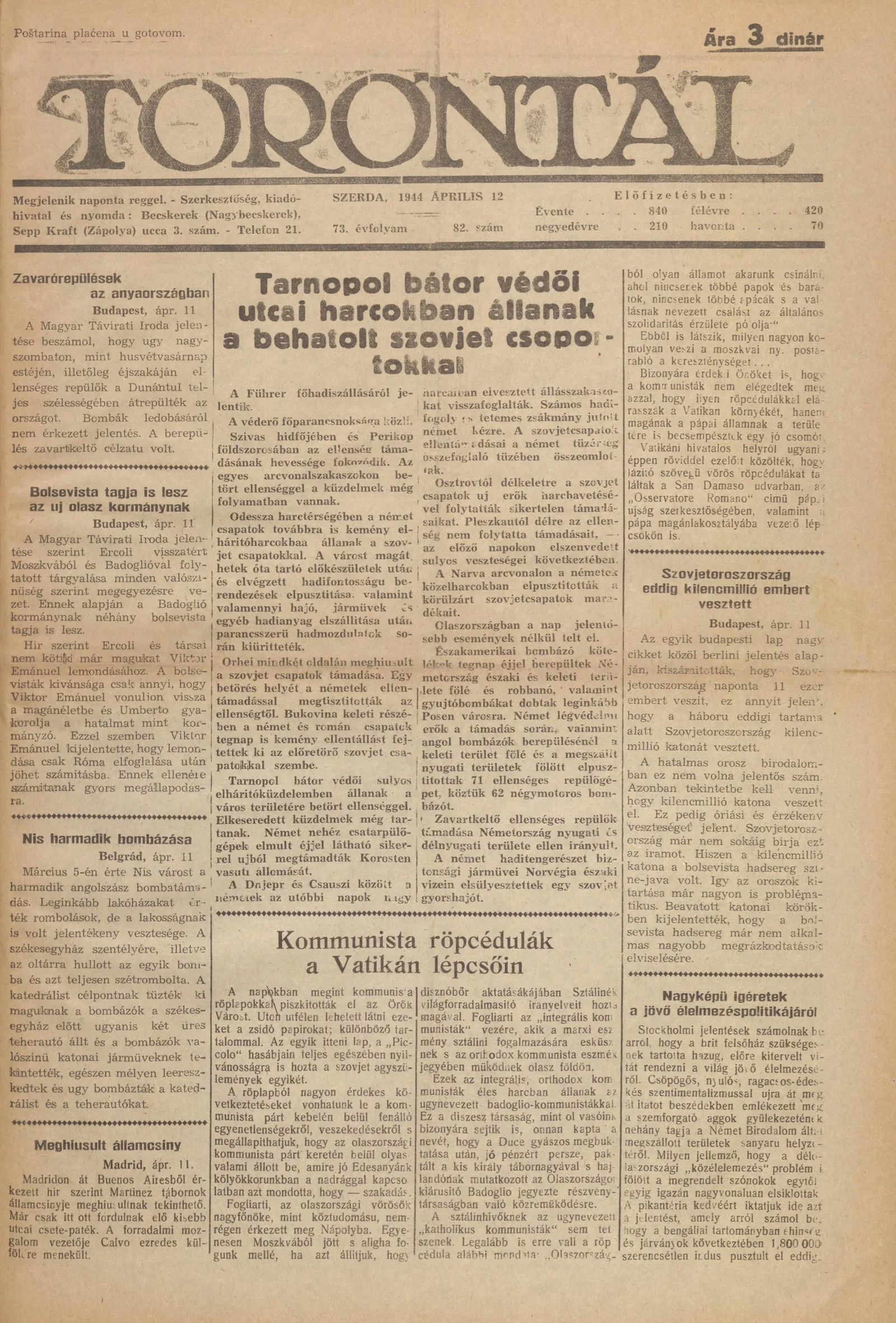 Torontál, 73. évf. 1944. április 12. 82. sz.