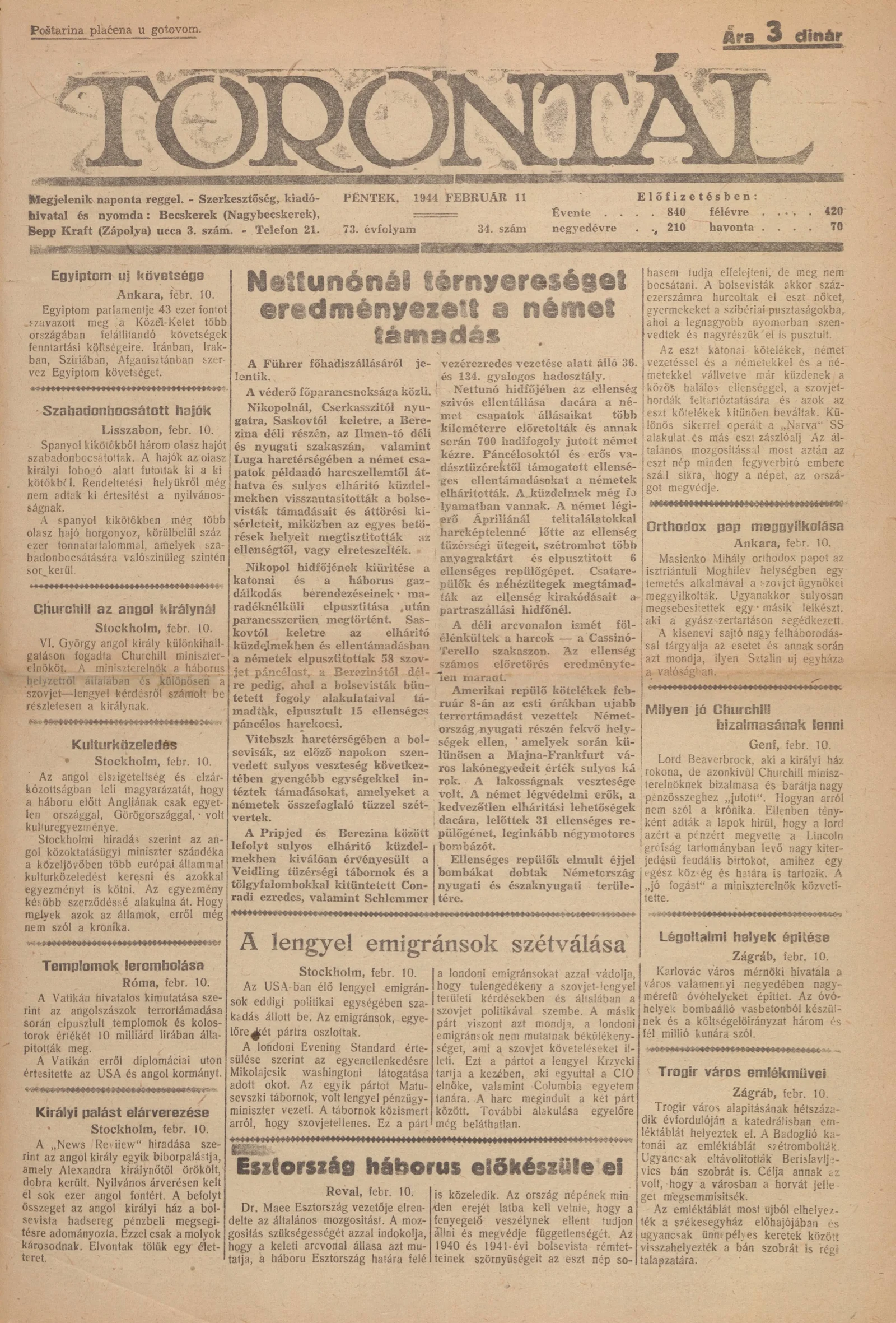 Torontál, 73. évf. 1944. február 11. 34. sz.