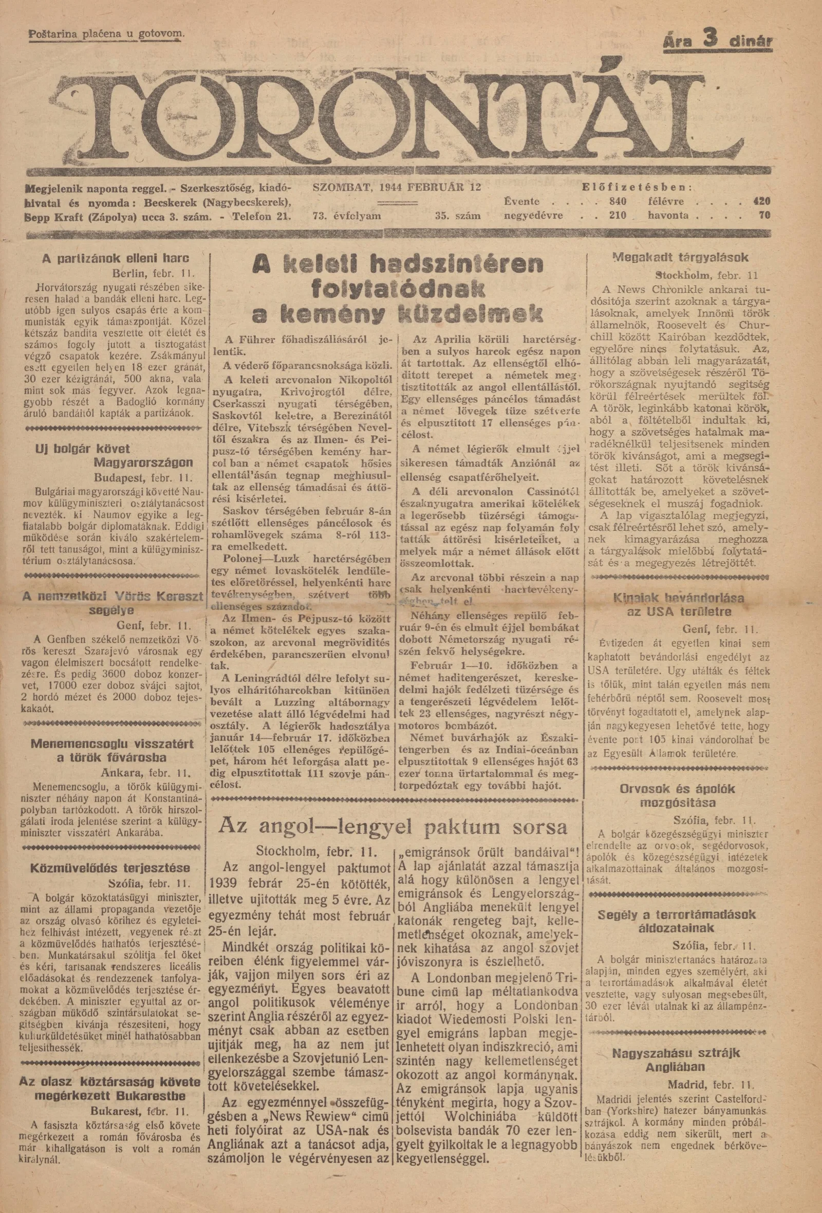 Torontál, 73. évf. 1944. február 12. 35. sz.