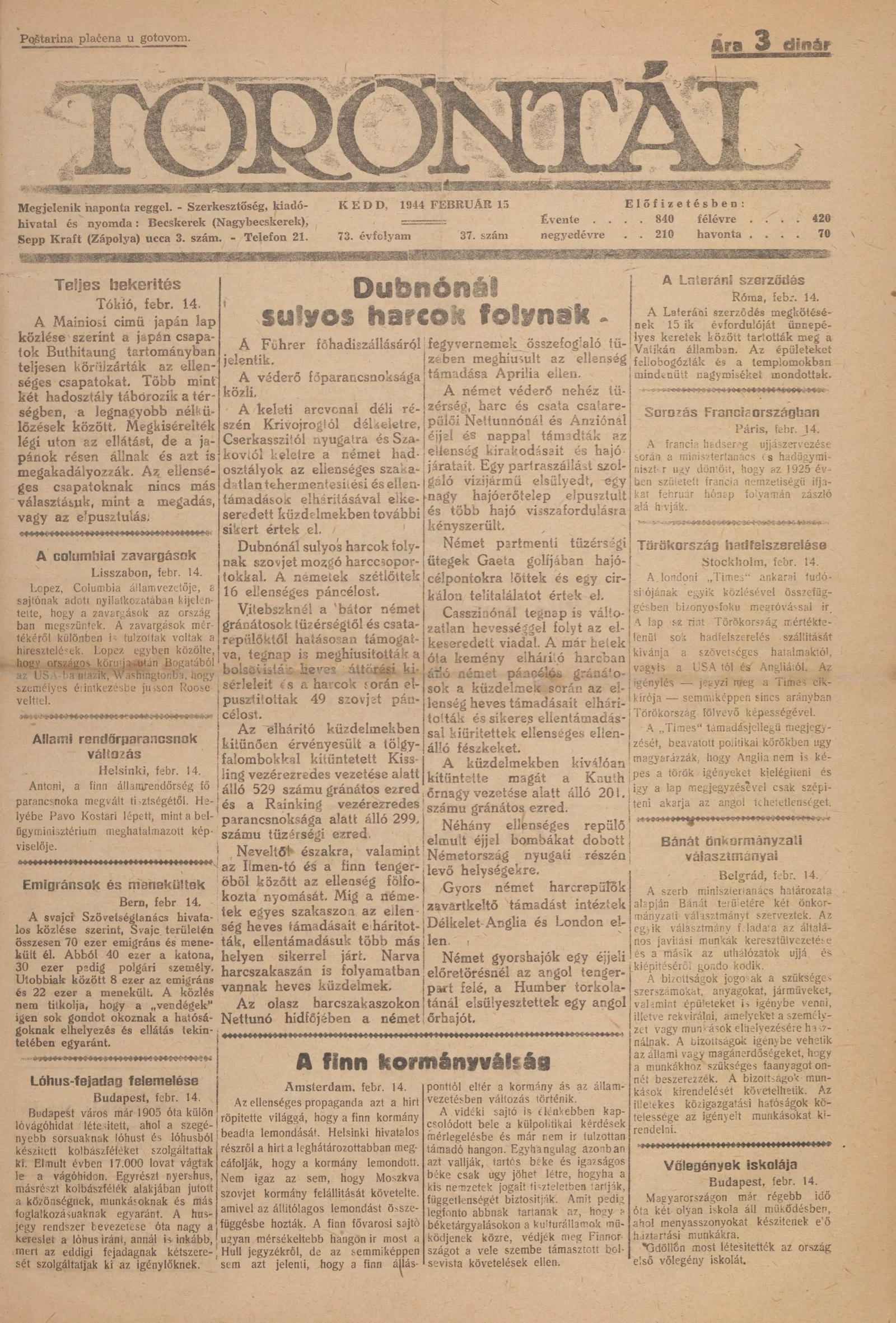 Torontál, 73. évf. 1944. február 15. 37. sz.