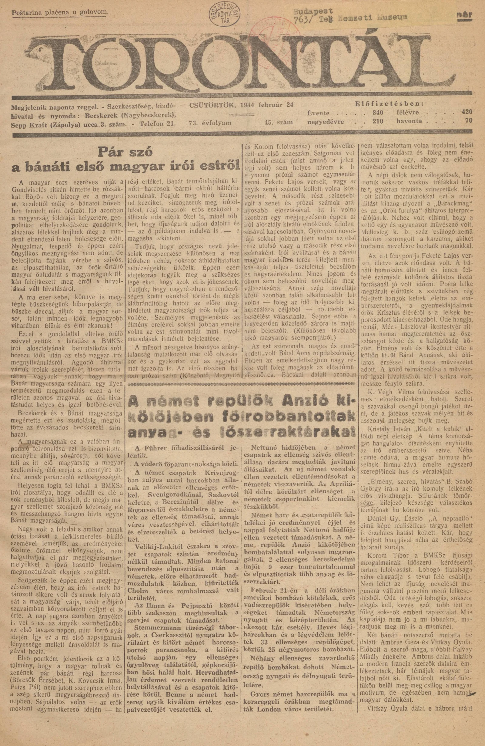 Torontál, 73. évf. 1944. február 24. 45. sz.