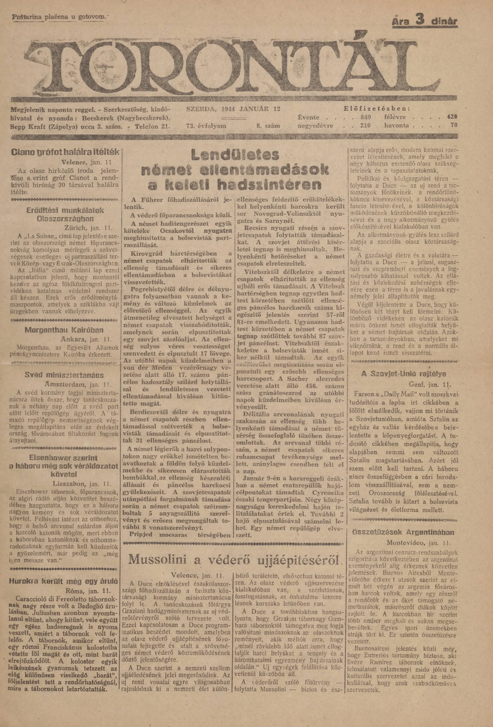 Torontál, 73. évf. 1944. január 12. 8. sz.