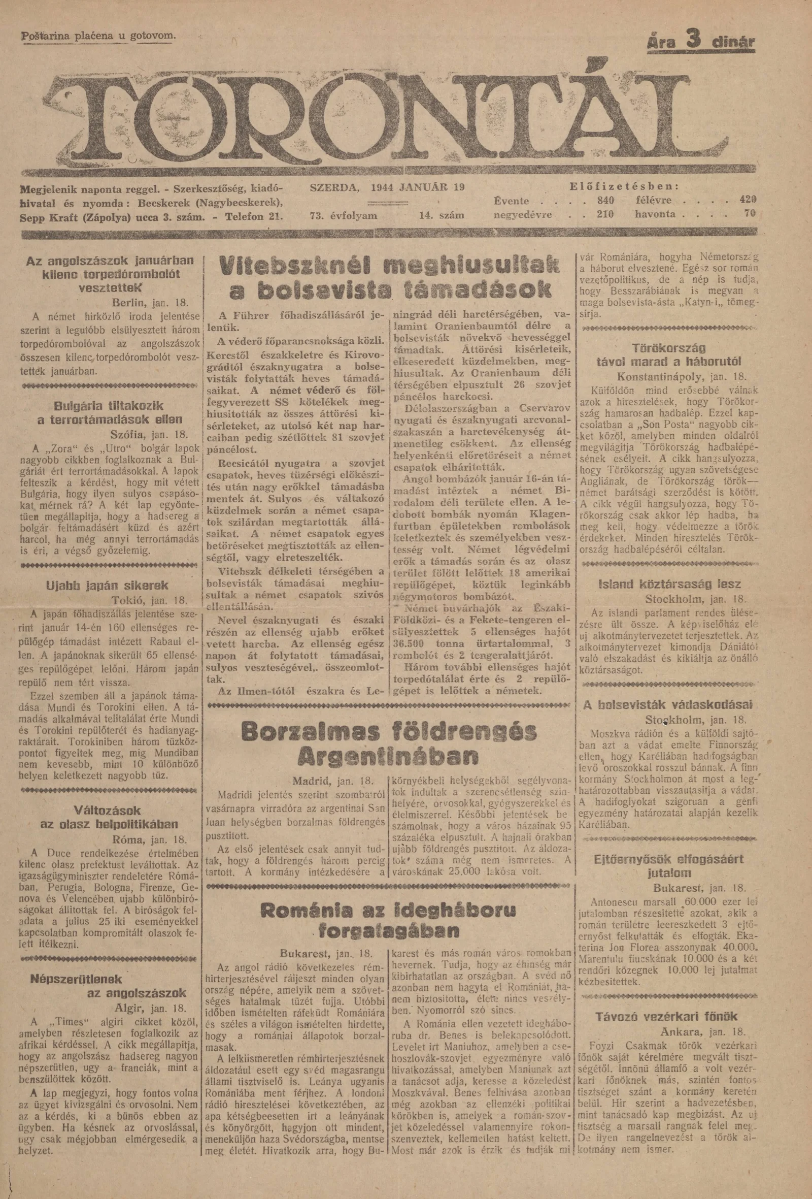 Torontál, 73. évf. 1944. január 19. 14. sz.