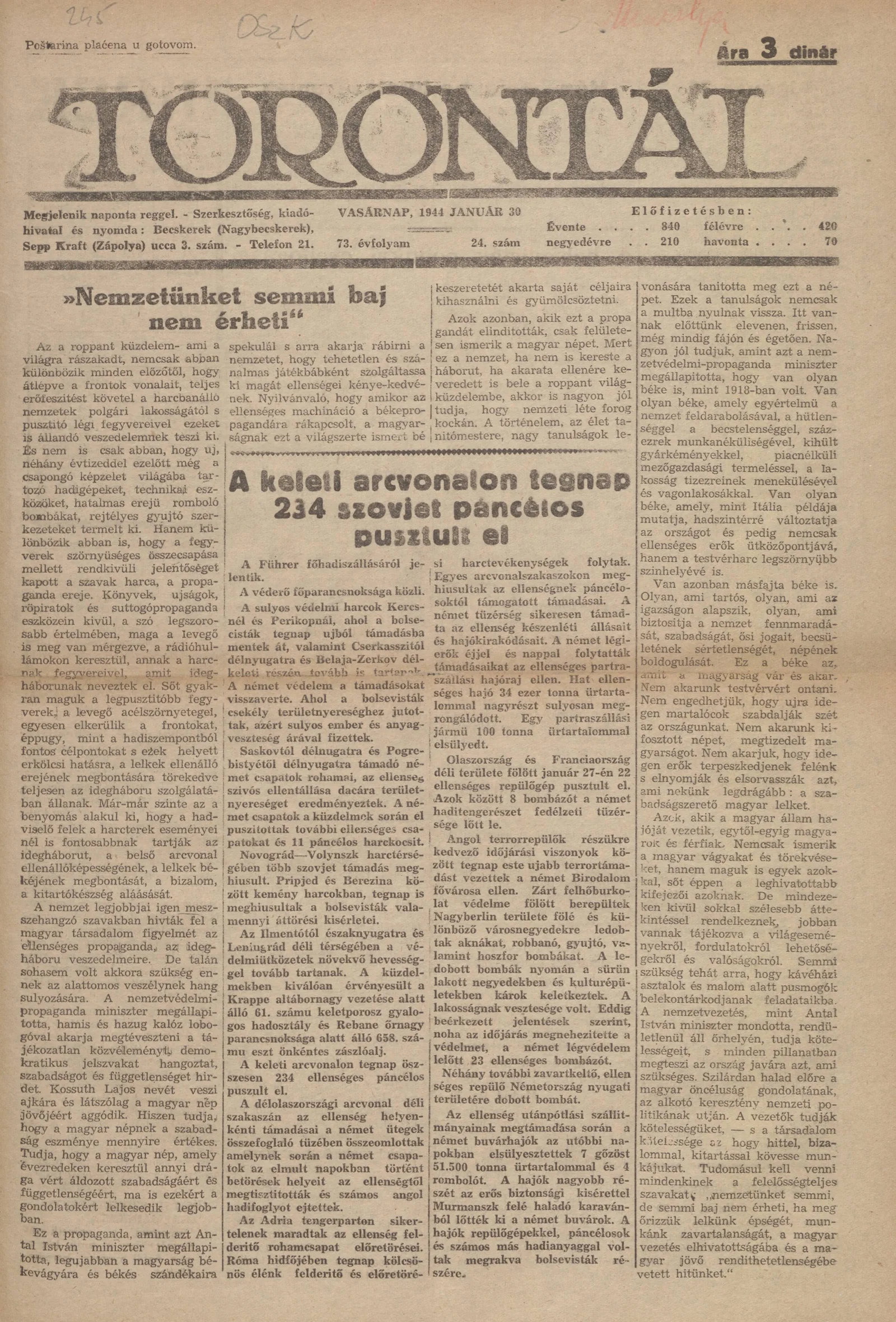 Torontál, 73. évf. 1944. január 30. 24. sz.