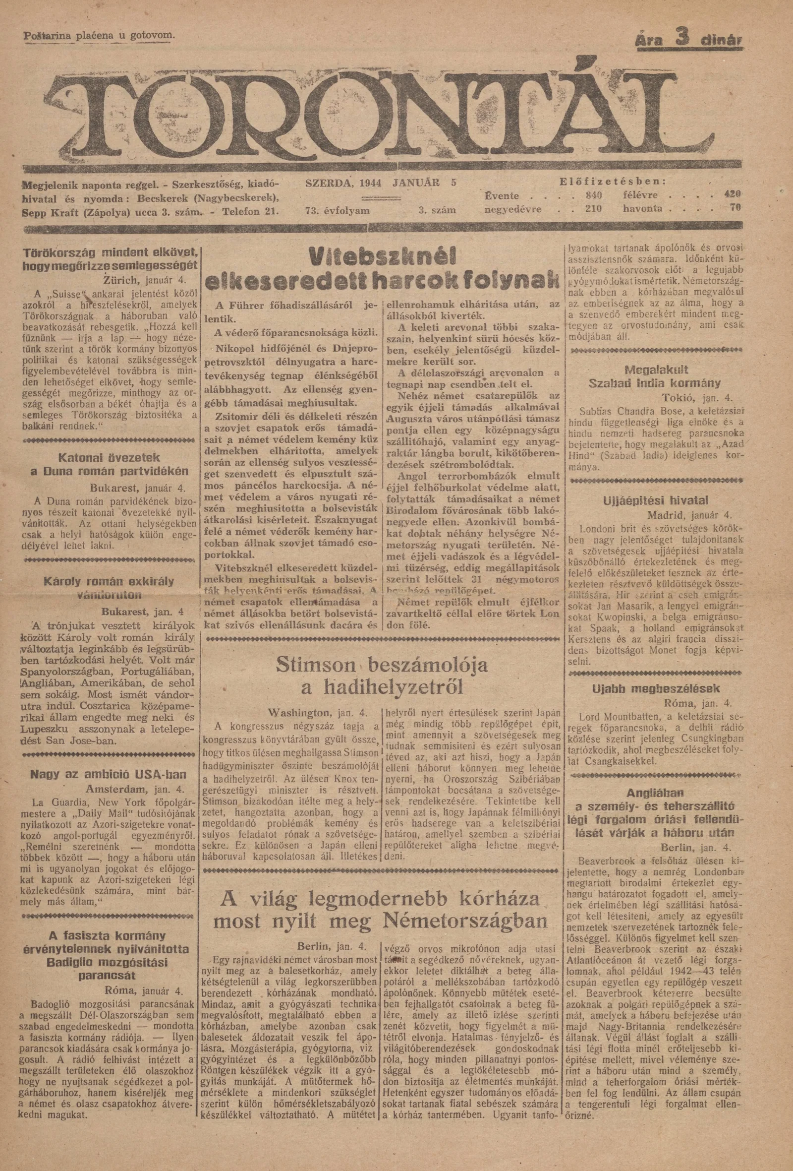 Torontál, 73. évf. 1944. január 5. 3. sz.