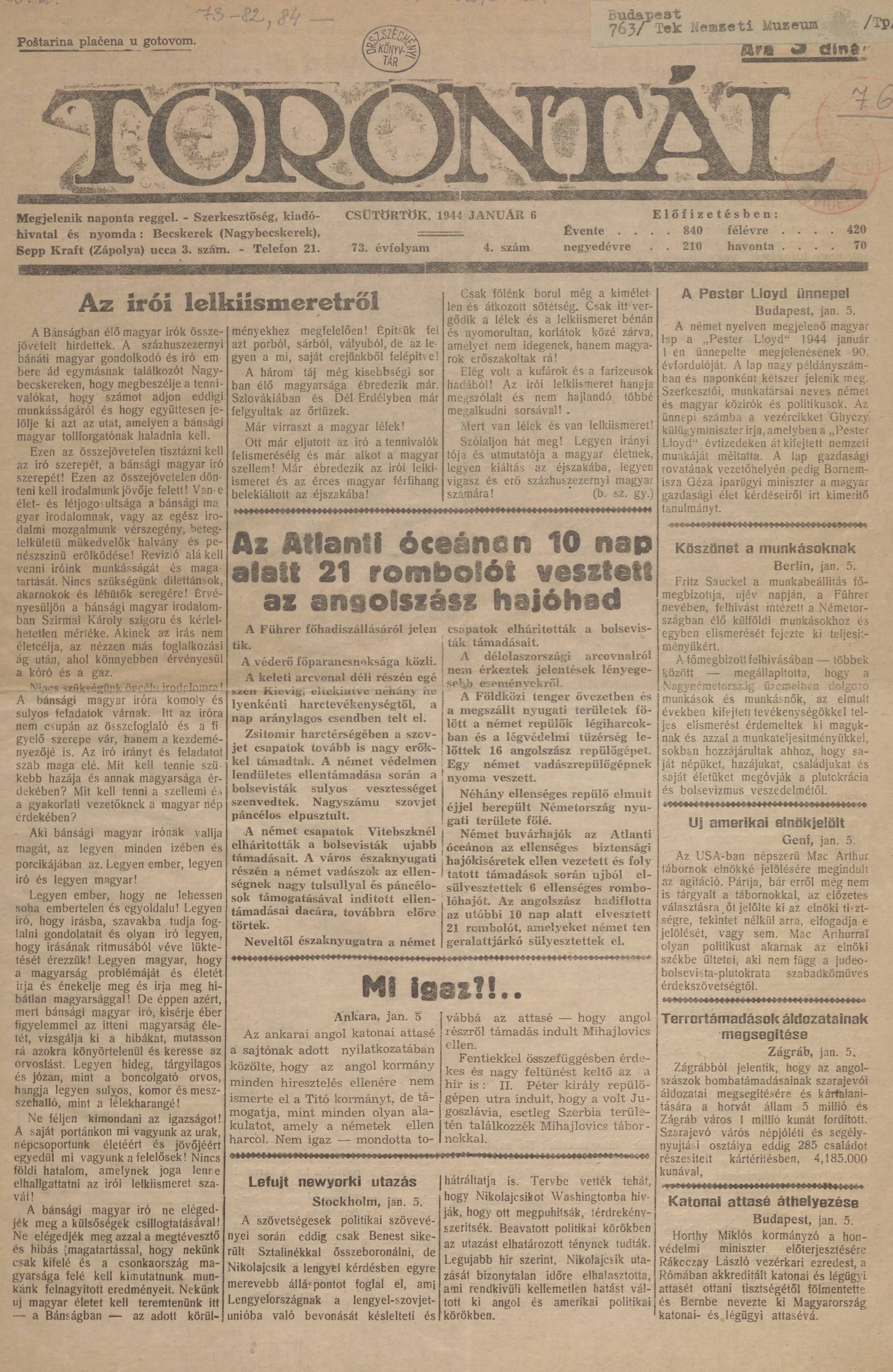 Torontál, 73. évf. 1944. január 6. 4. sz.