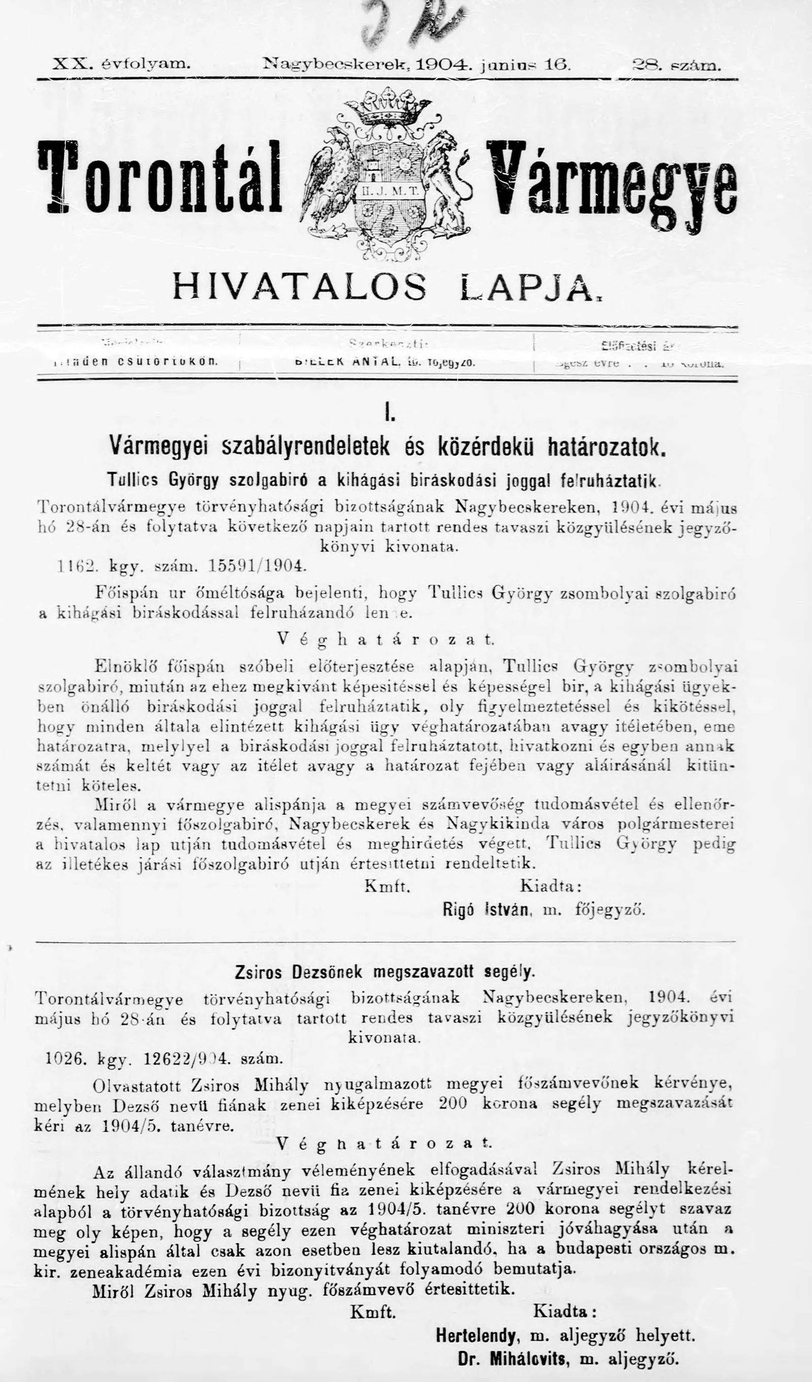 Torontál Vármegye Hivatalos Lapja, 20. évf. 1904. június 16. 28. sz.