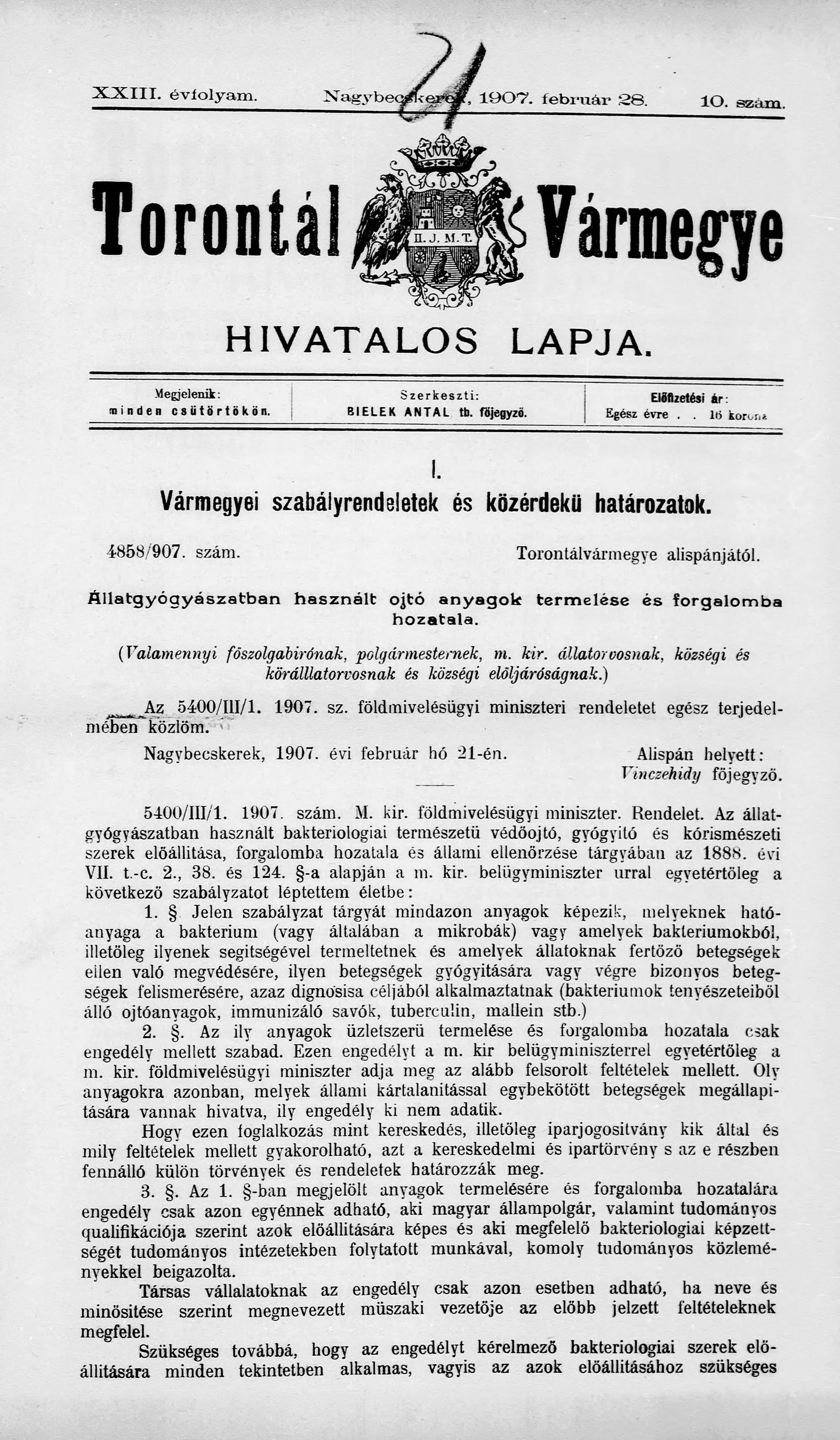 Torontál Vármegye Hivatalos Lapja, 23. évf. 1907. február 28. 10. sz.