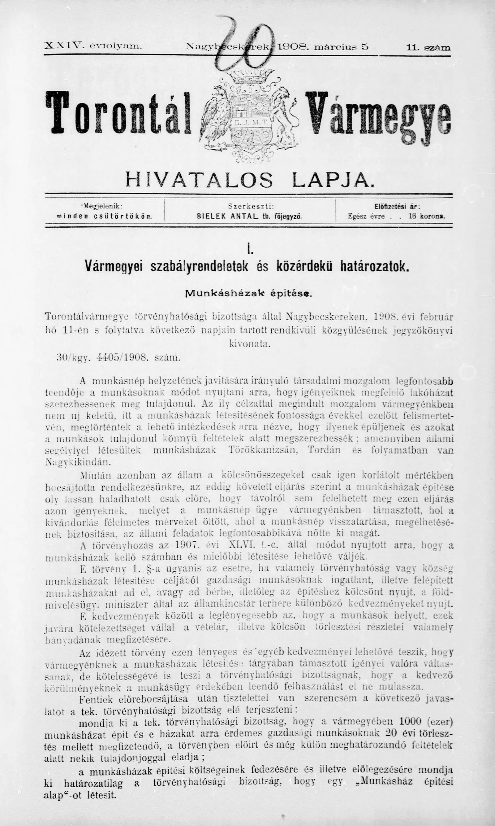 Torontál Vármegye Hivatalos Lapja, 24. évf. 1908. március 5. 11. sz.