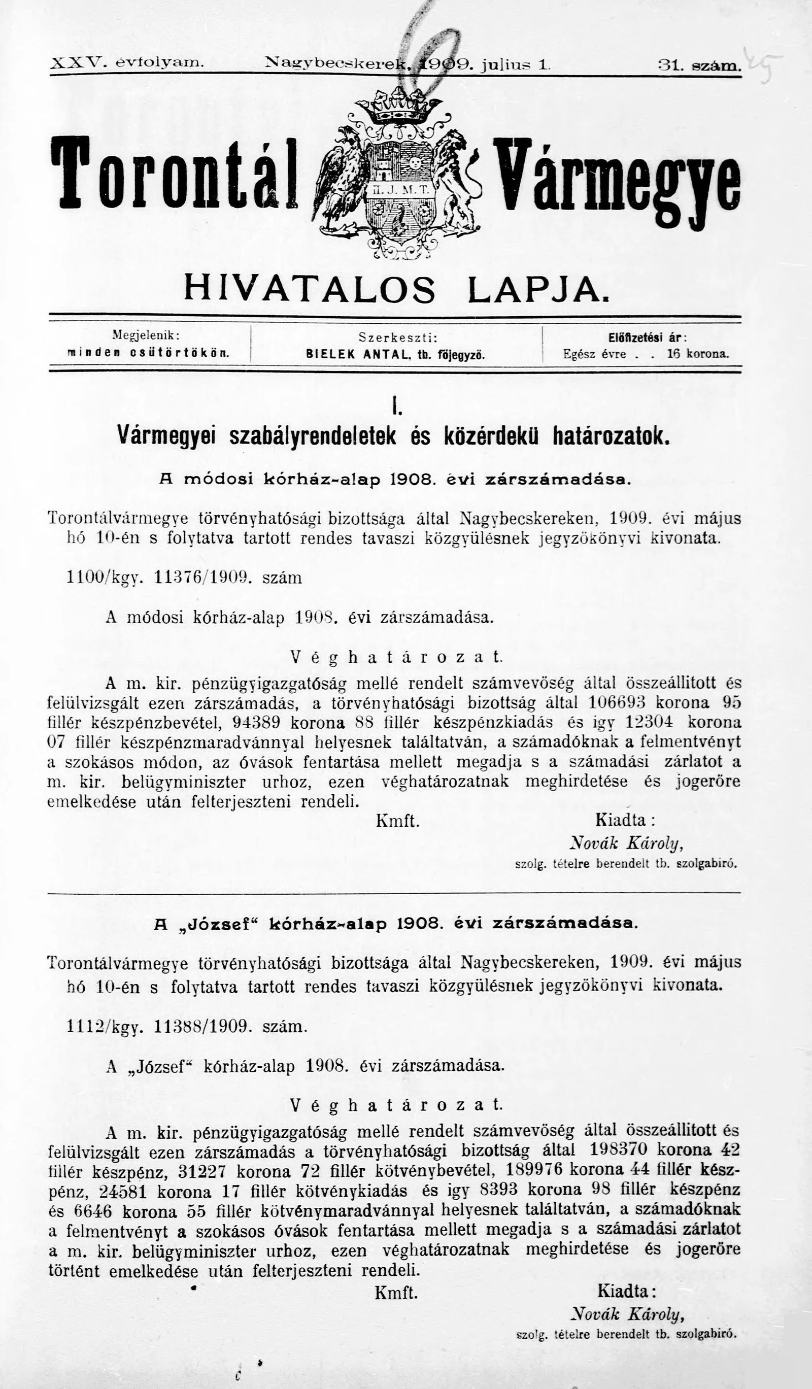 Torontál Vármegye Hivatalos Lapja, 25. évf. 1909. július 1. 31. sz.