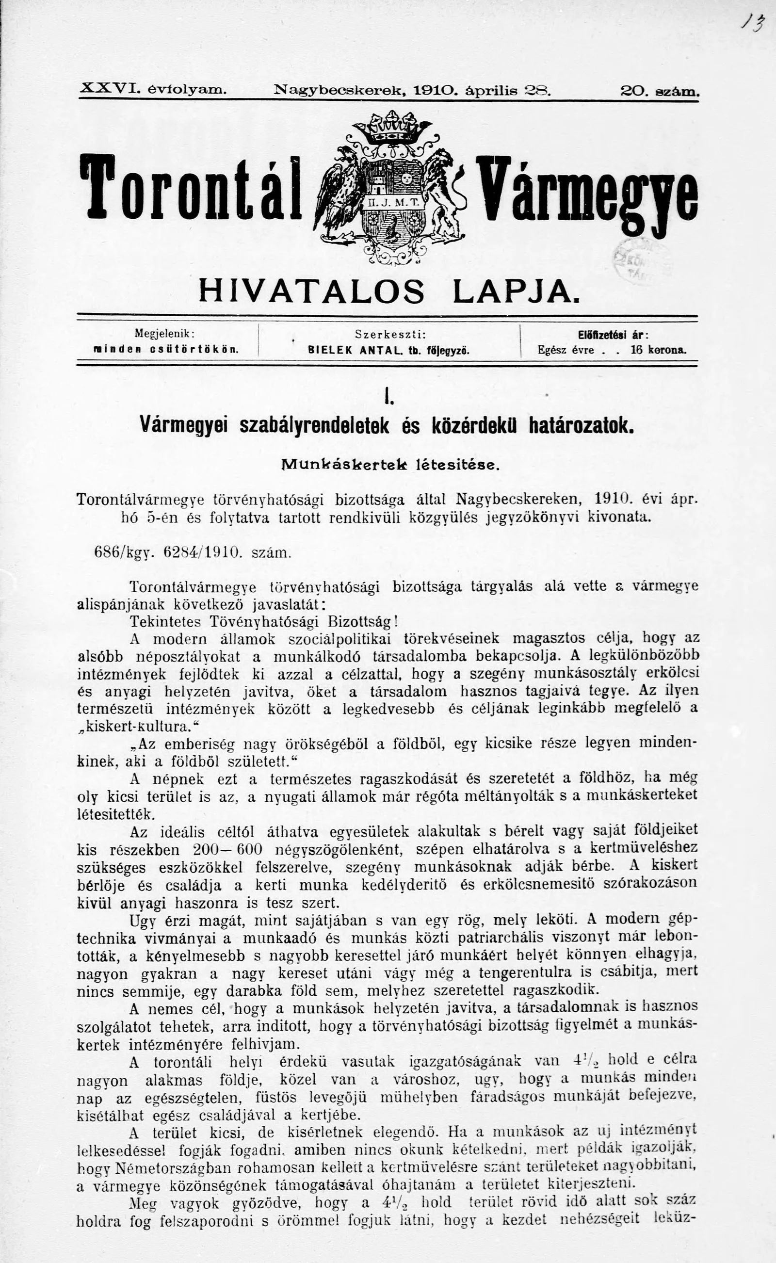 Torontál Vármegye Hivatalos Lapja, 26. évf. 1910. április 28. 20. sz.