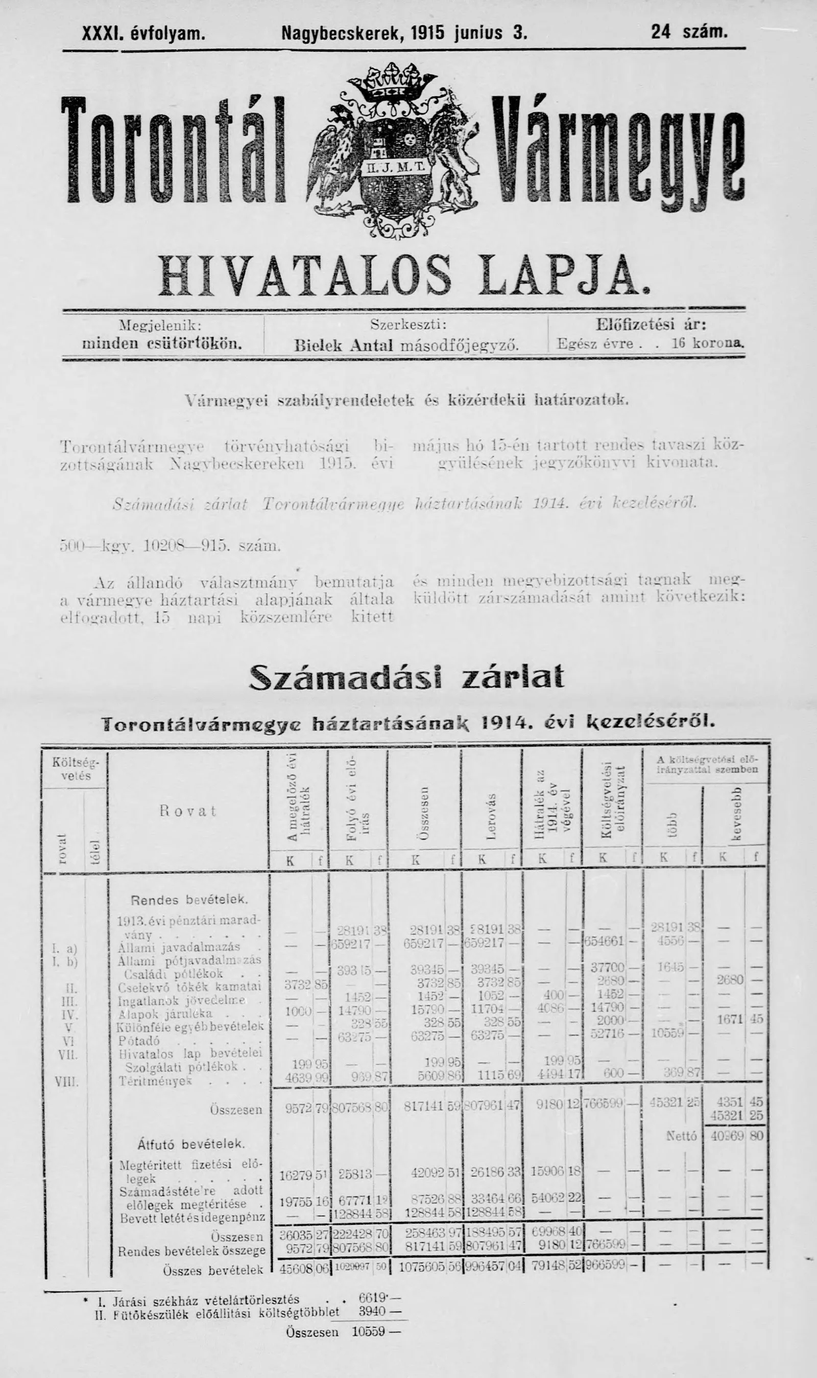 Torontál Vármegye Hivatalos Lapja, 31. évf. 1915. június 3. 24. sz.