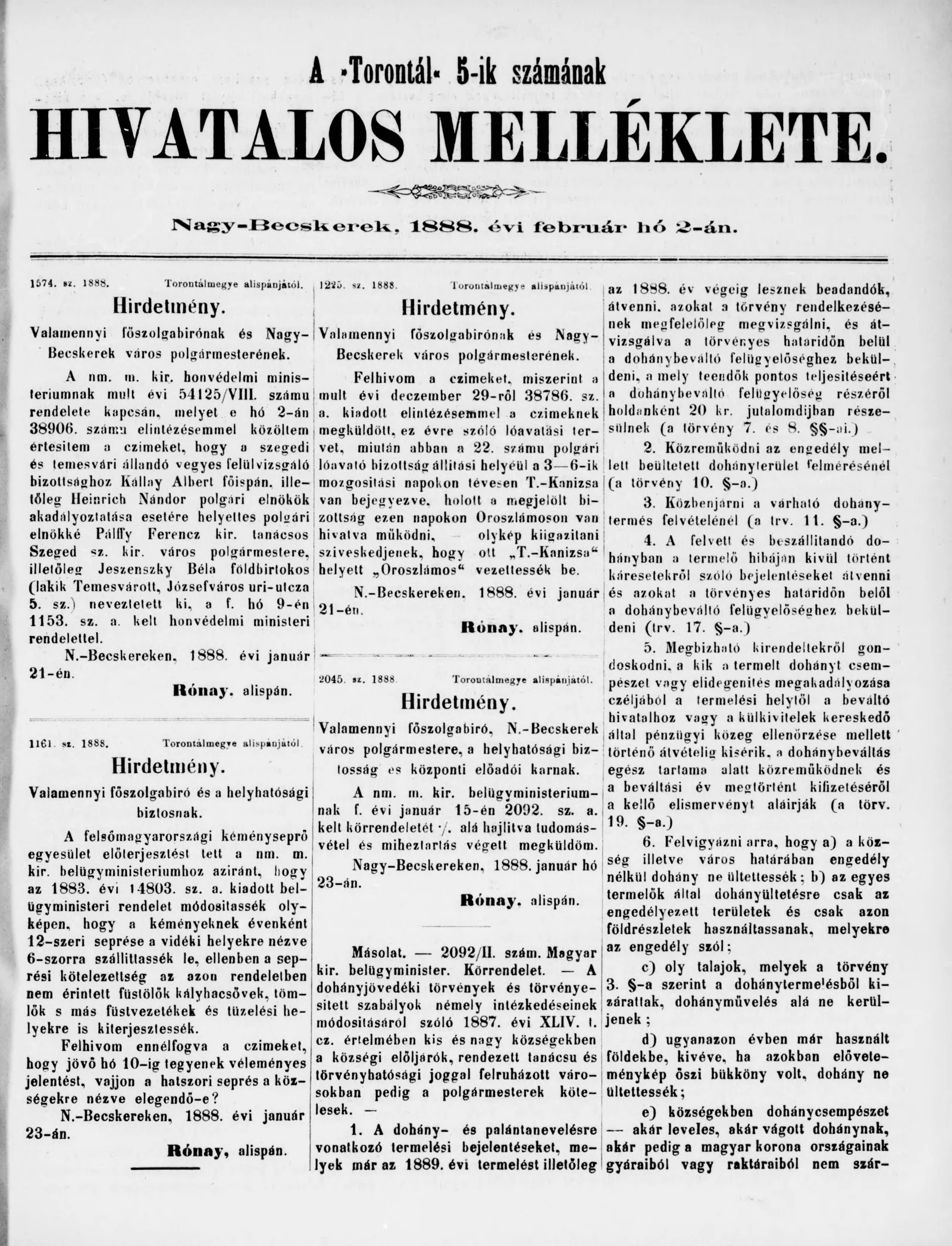 A Totontál hivatalos melléklete, 1. évf. 1888. február 2. 5. sz.