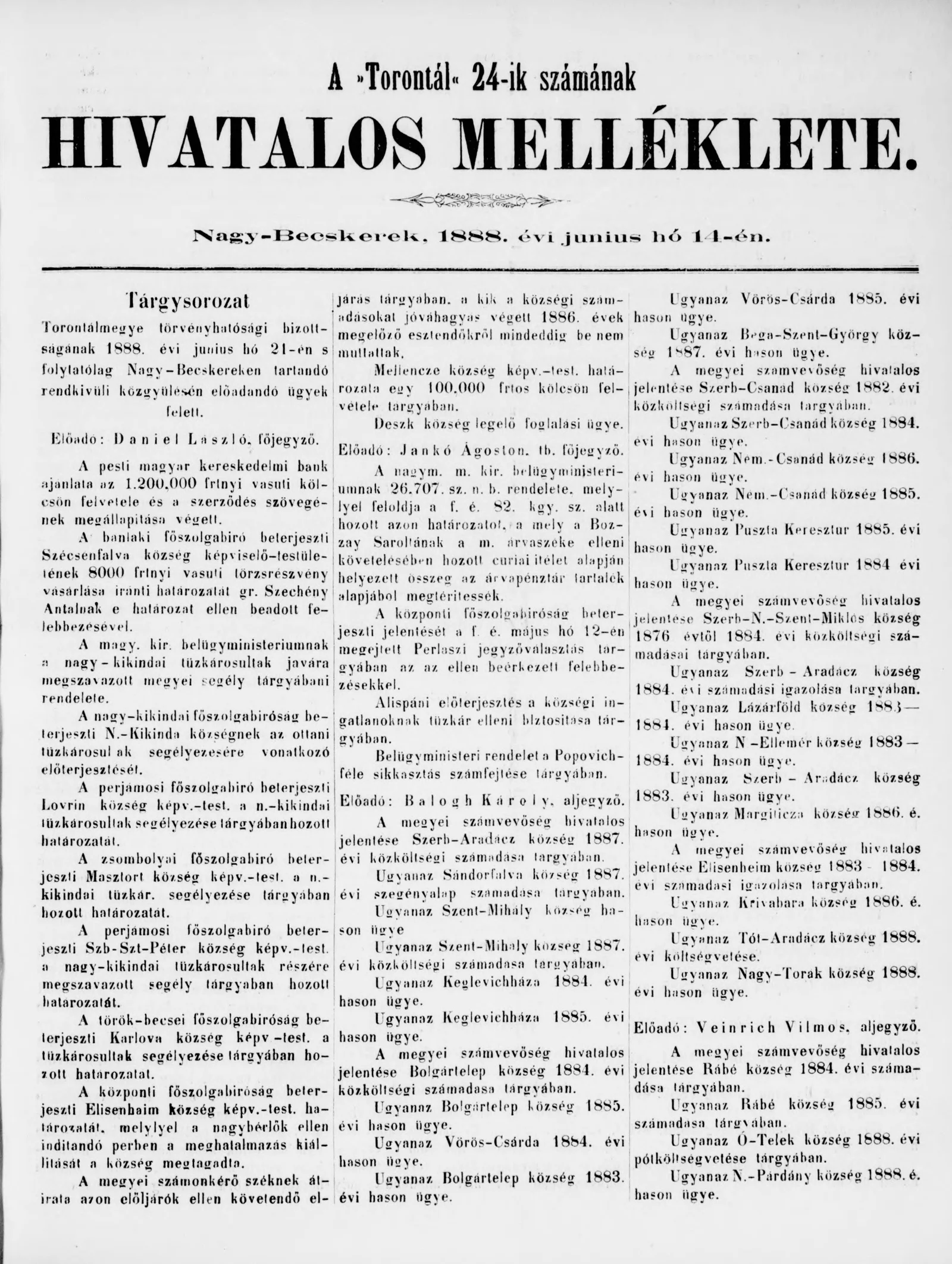 A Totontál hivatalos melléklete, 1. évf. 1888. június 14. 24. sz.