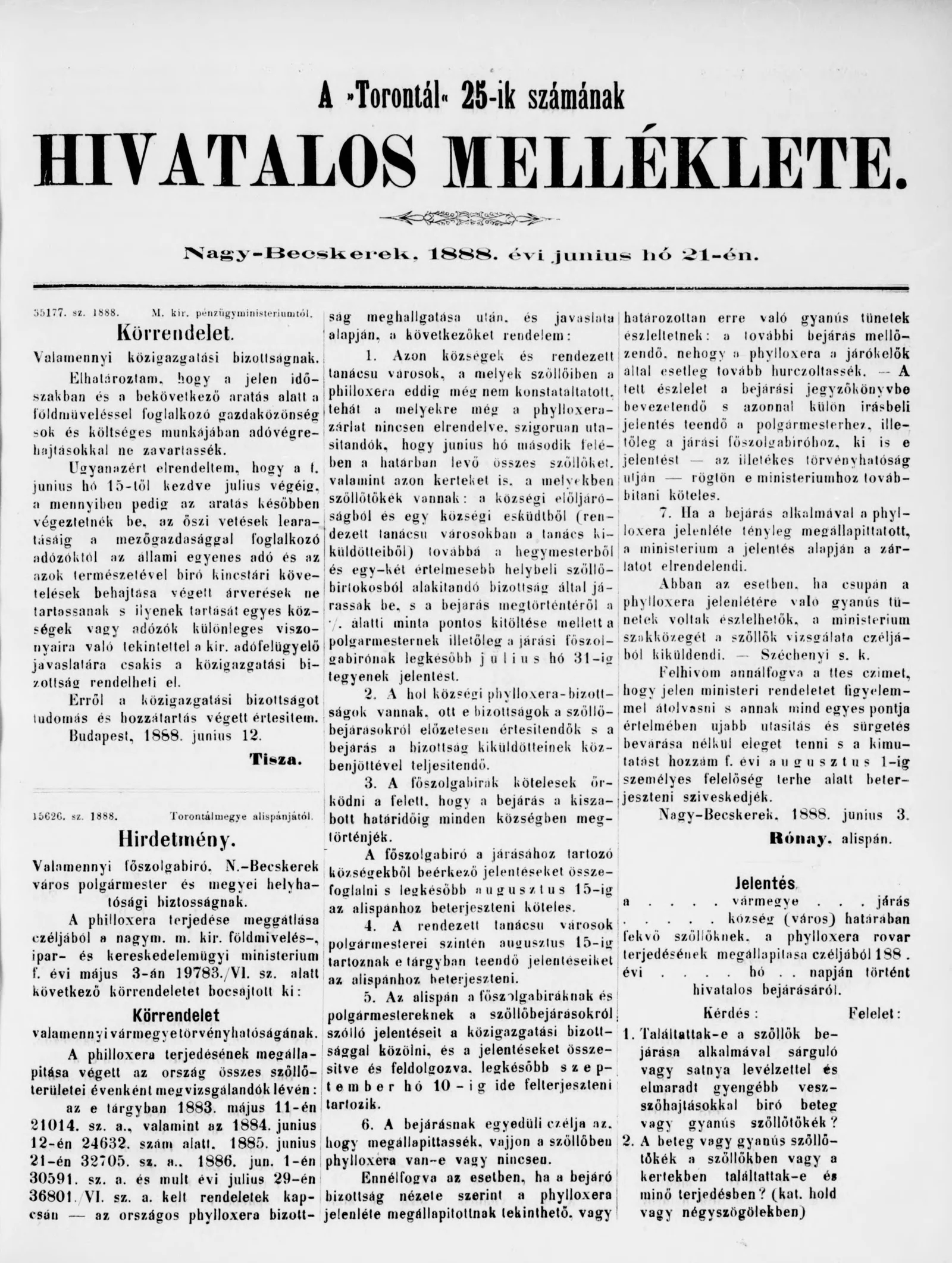 A Totontál hivatalos melléklete, 1. évf. 1888. június 21. 25. sz.