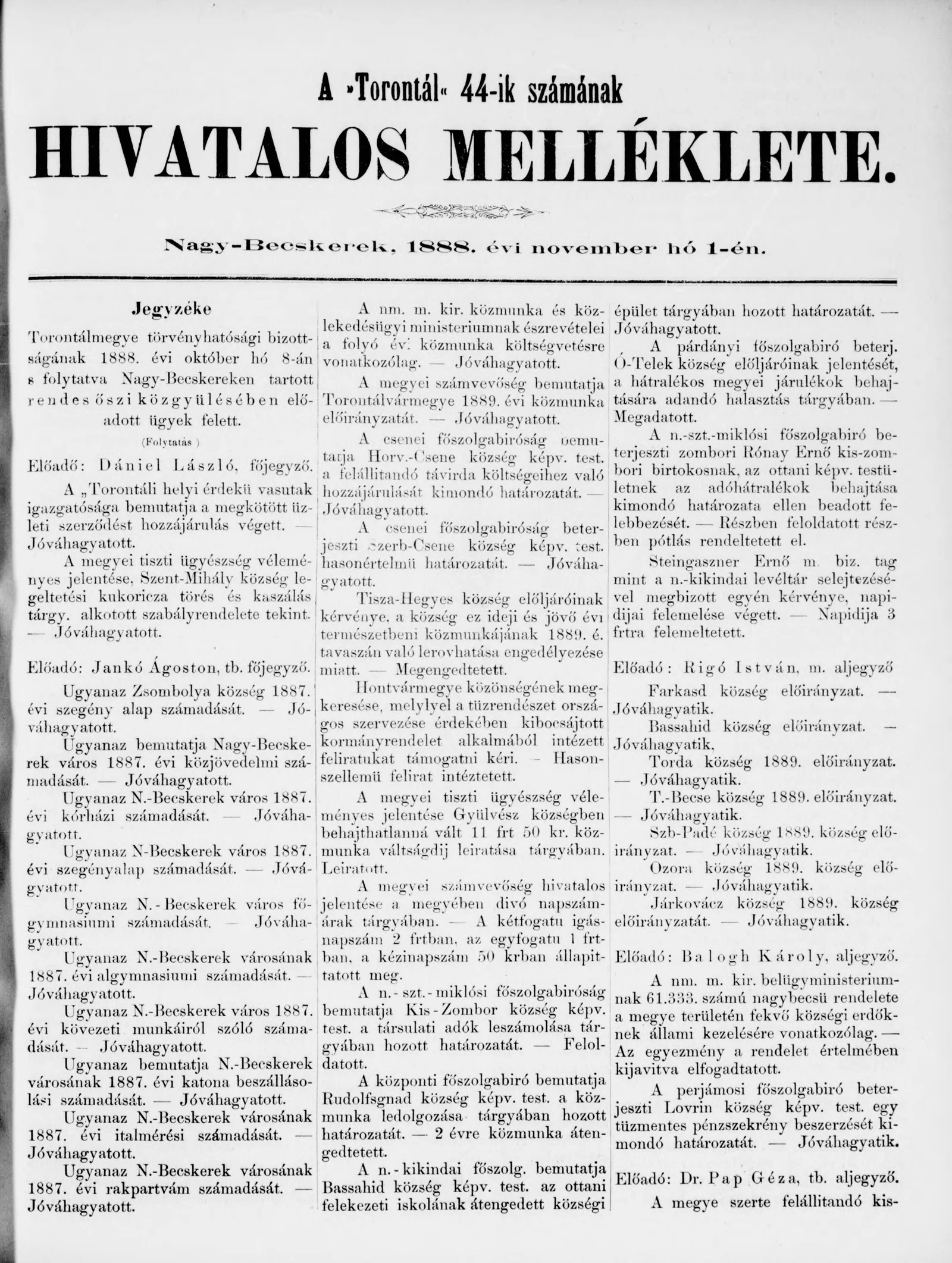 A Totontál hivatalos melléklete, 1. évf. 1888. november 1. 44. sz.