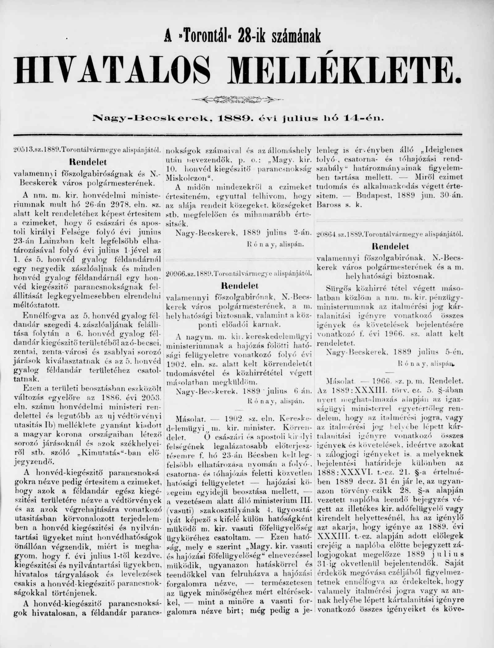 A Totontál hivatalos melléklete, 2. évf. 1889. július 28. 30. sz.