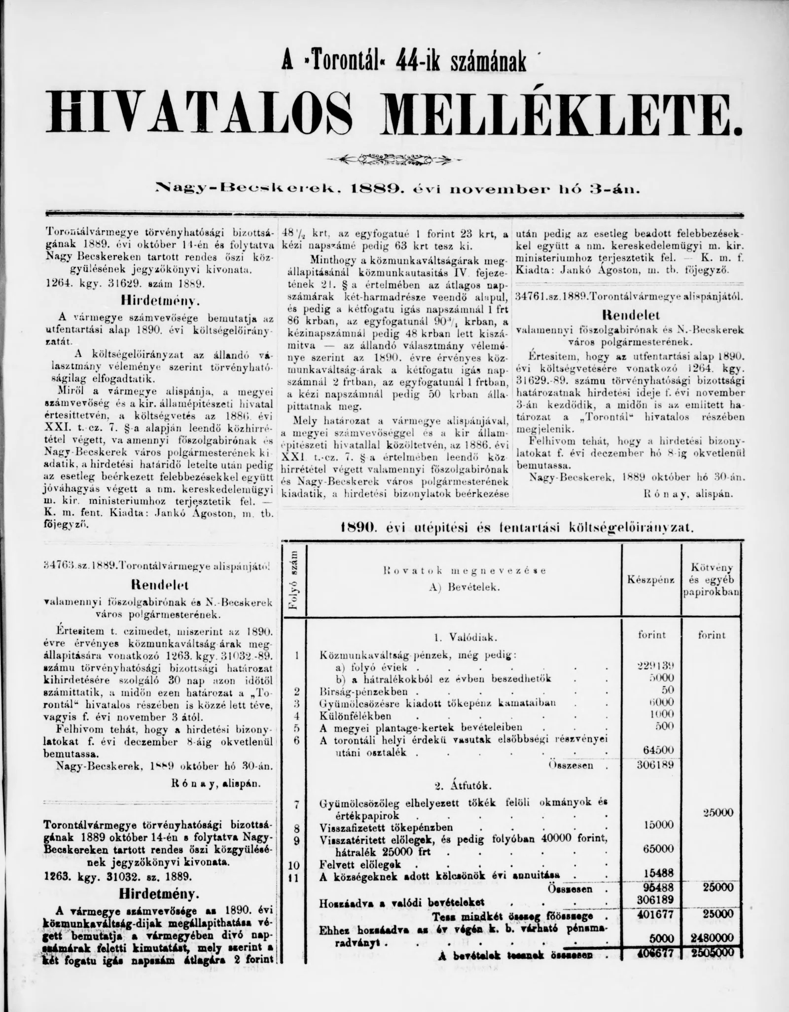 A Totontál hivatalos melléklete, 2. évf. 1889. november 3. 44. sz.