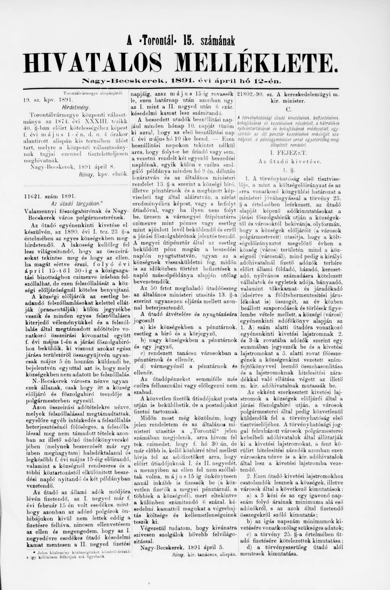 A Totontál hivatalos melléklete, 4. évf. 1891. április 12. 15. sz.