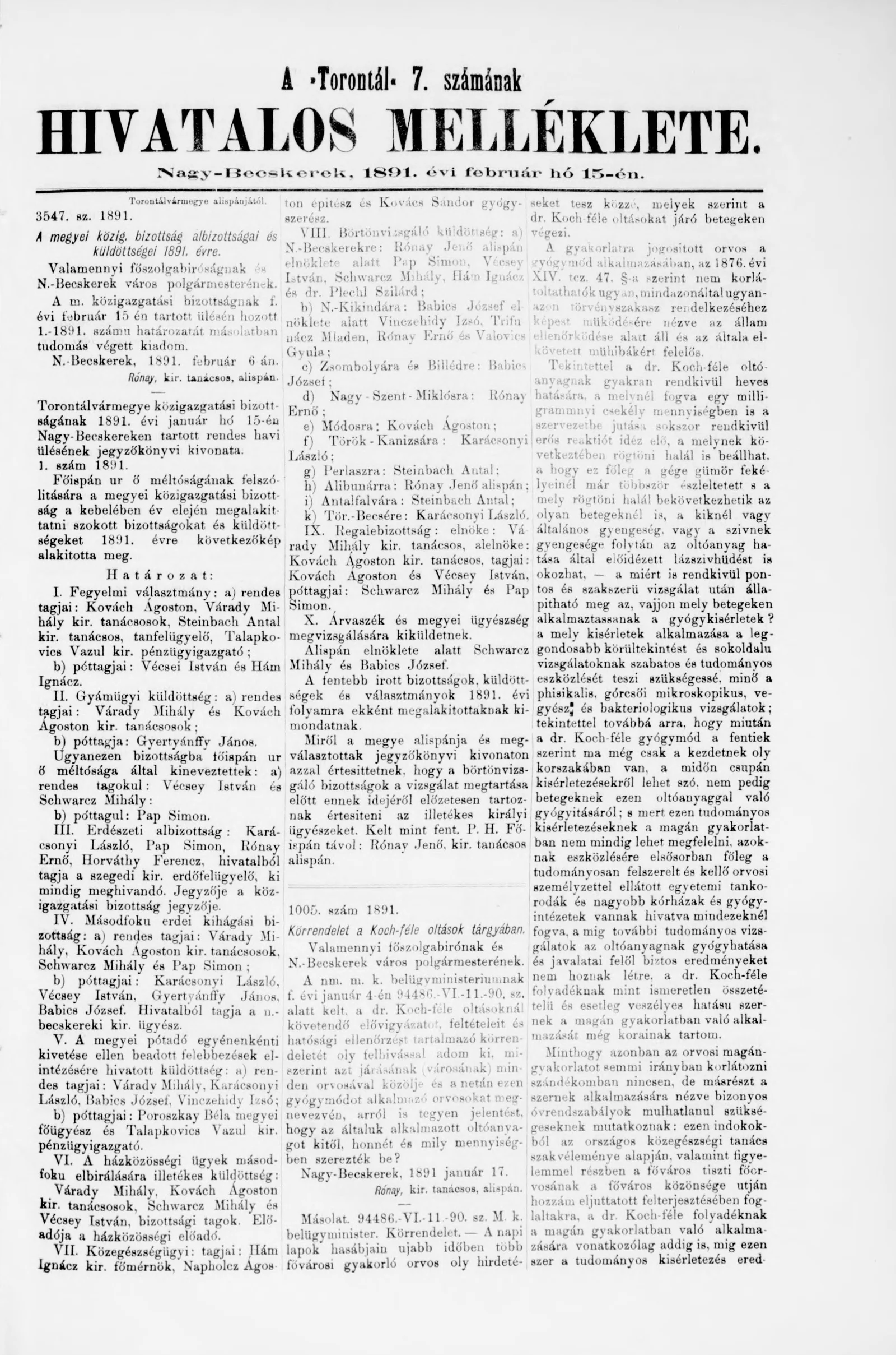 A Totontál hivatalos melléklete, 4. évf. 1891. február 15. 7. sz.