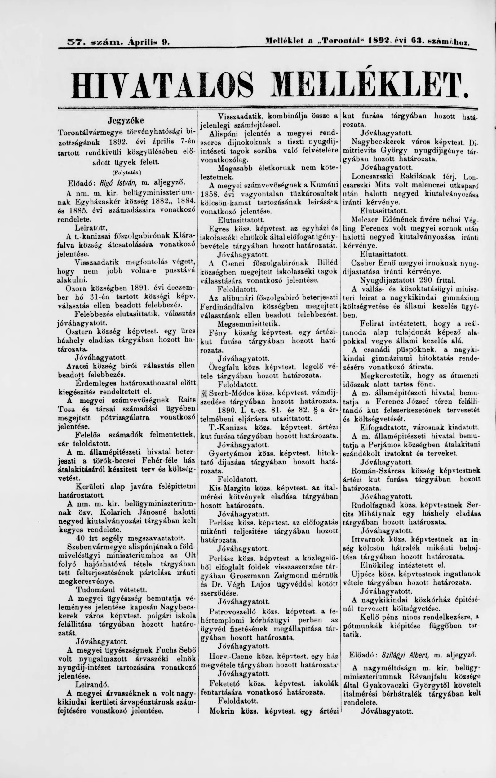 A Totontál hivatalos melléklete, 5. évf. 1892. április 9. 57. sz.