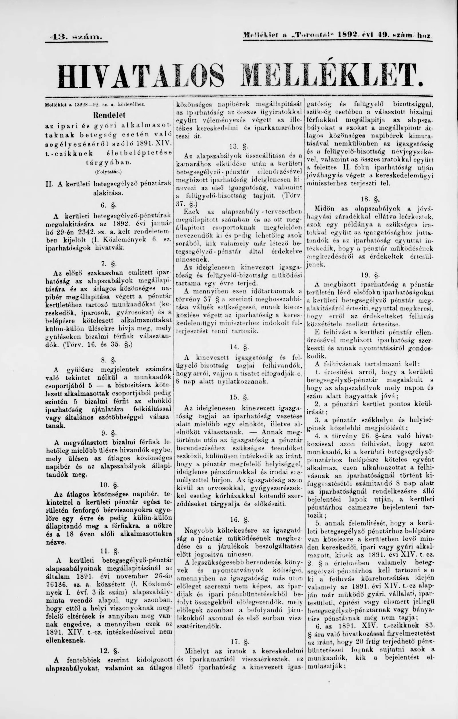 A Totontál hivatalos melléklete, 5. évf. 1892. március 23. 43. sz.