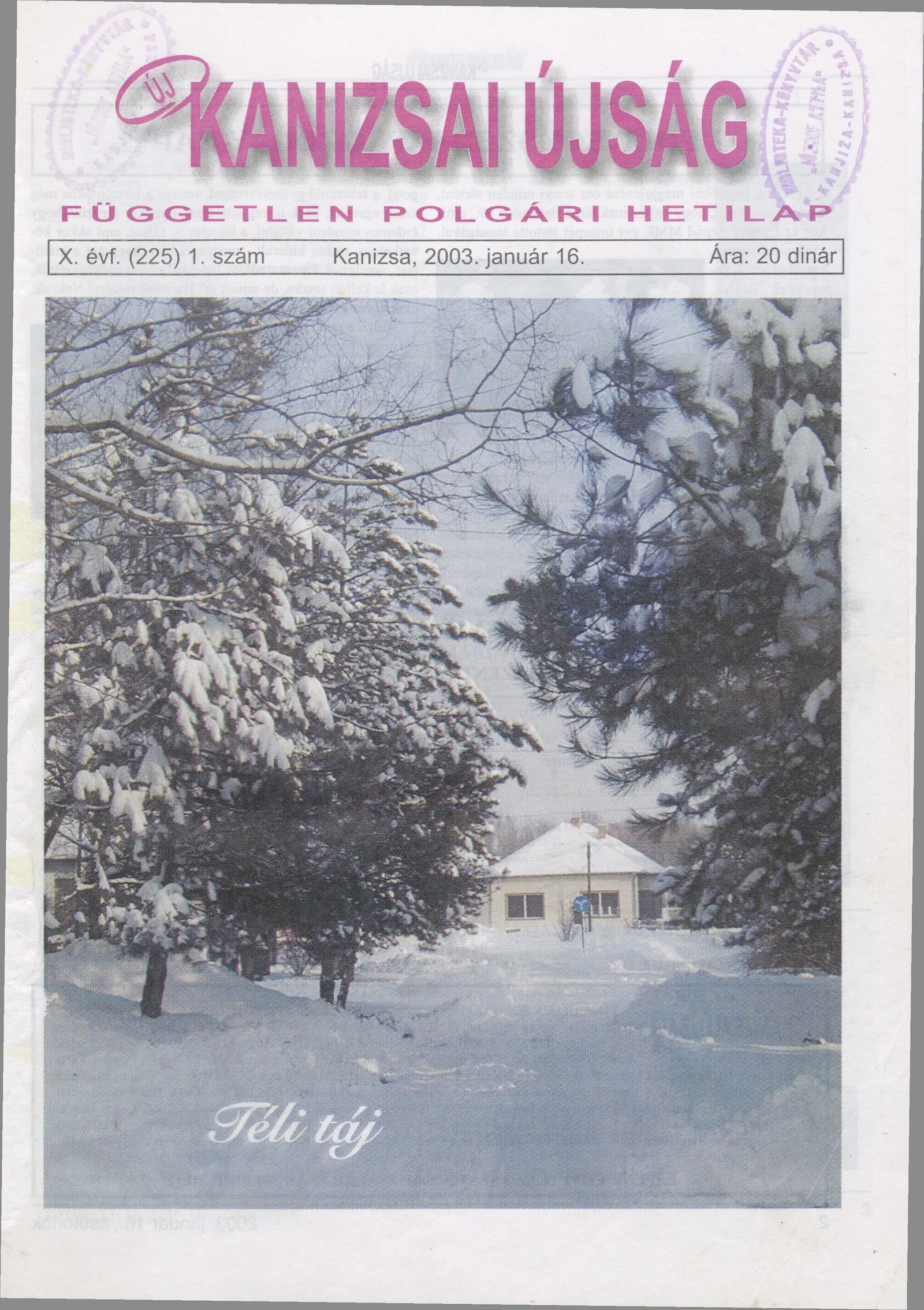Új Kanizsai Újság, 10. évf. 2003. január 16. 1. sz.