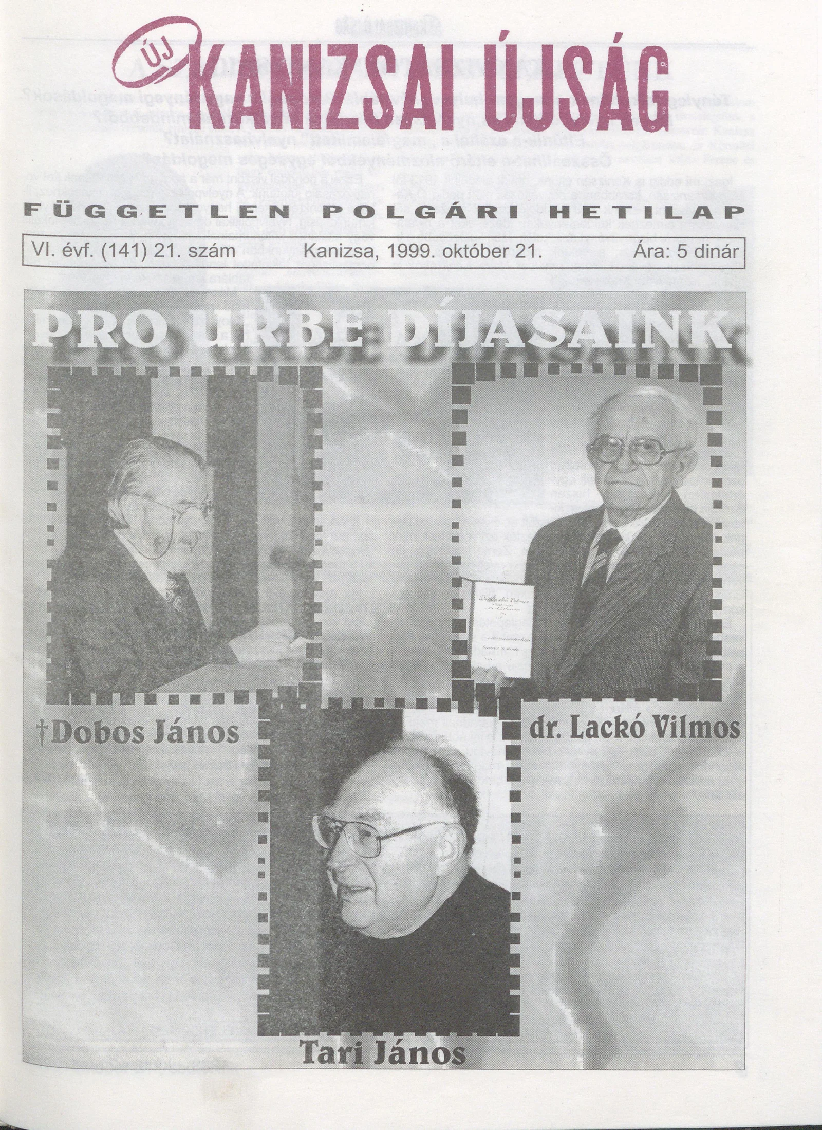 Új Kanizsai Újság, 6. évf. 1999. október 21. 21. sz.