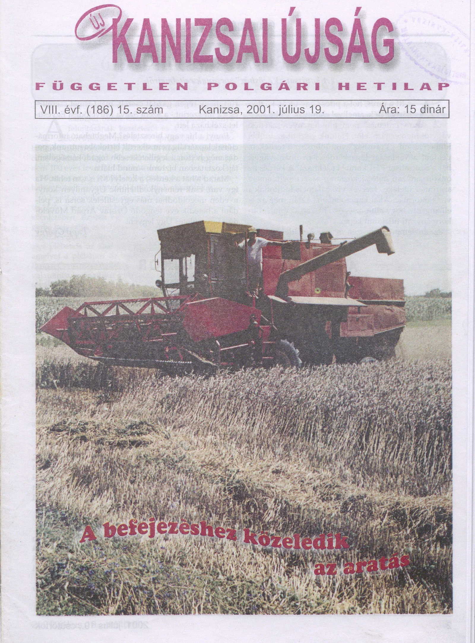 Új Kanizsai Újság, 8. évf. 2001. július 19. 15. sz.