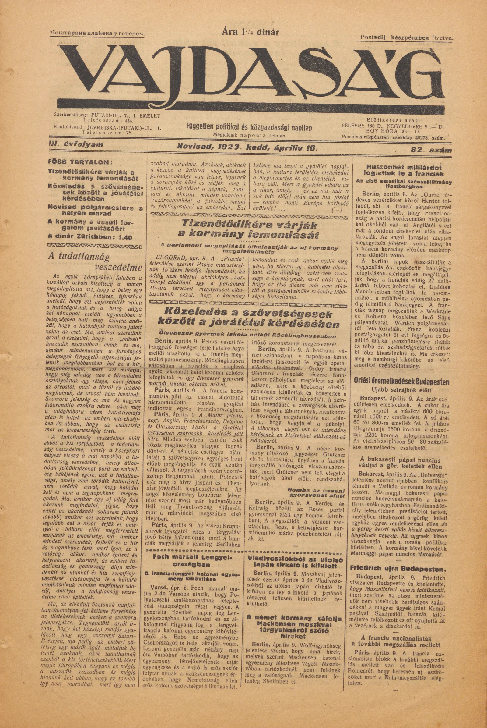 Vajdaság, 3. évf. 1923. április 10. 82. sz.
