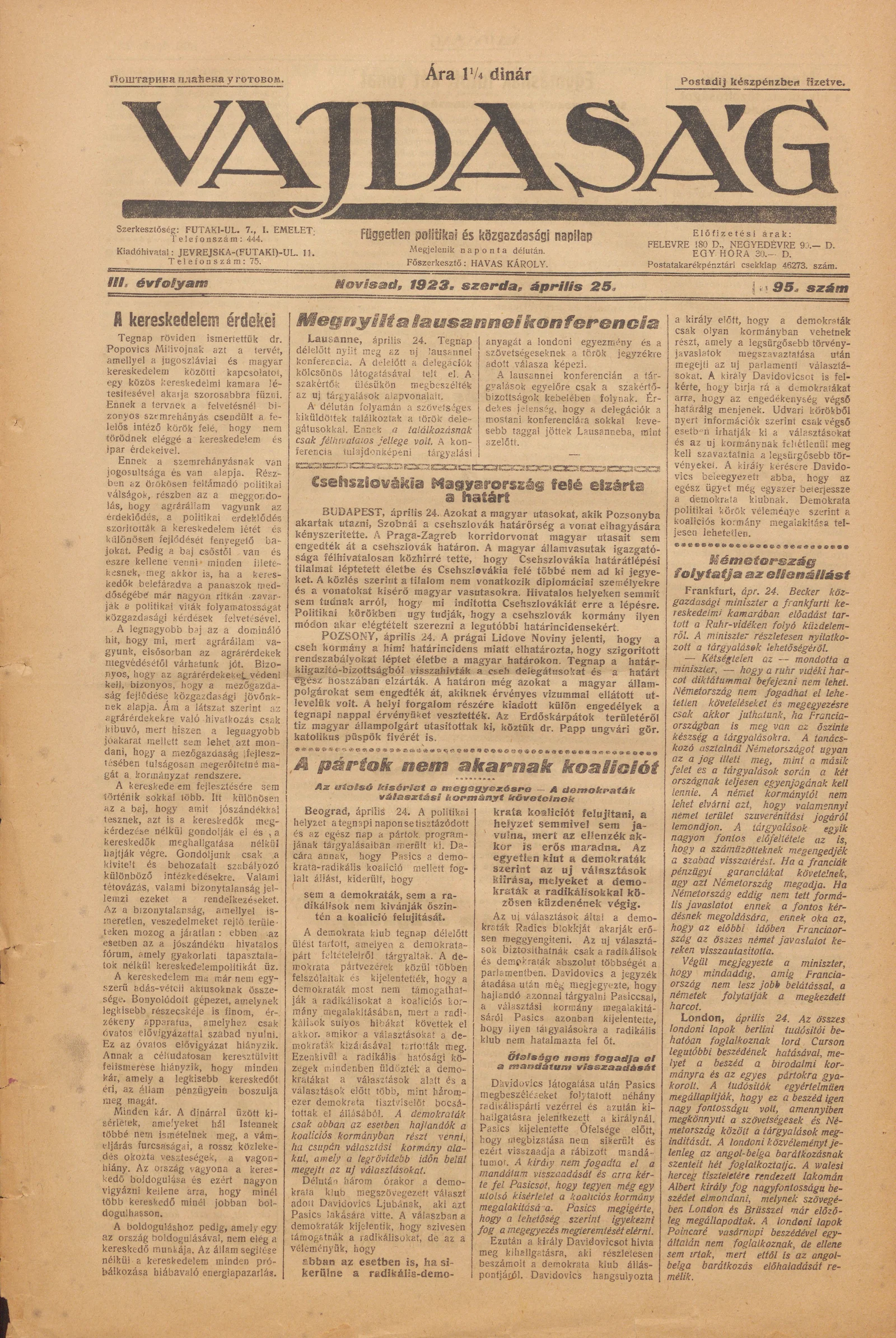 Vajdaság, 3. évf. 1923. április 25. 95. sz.